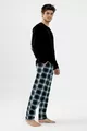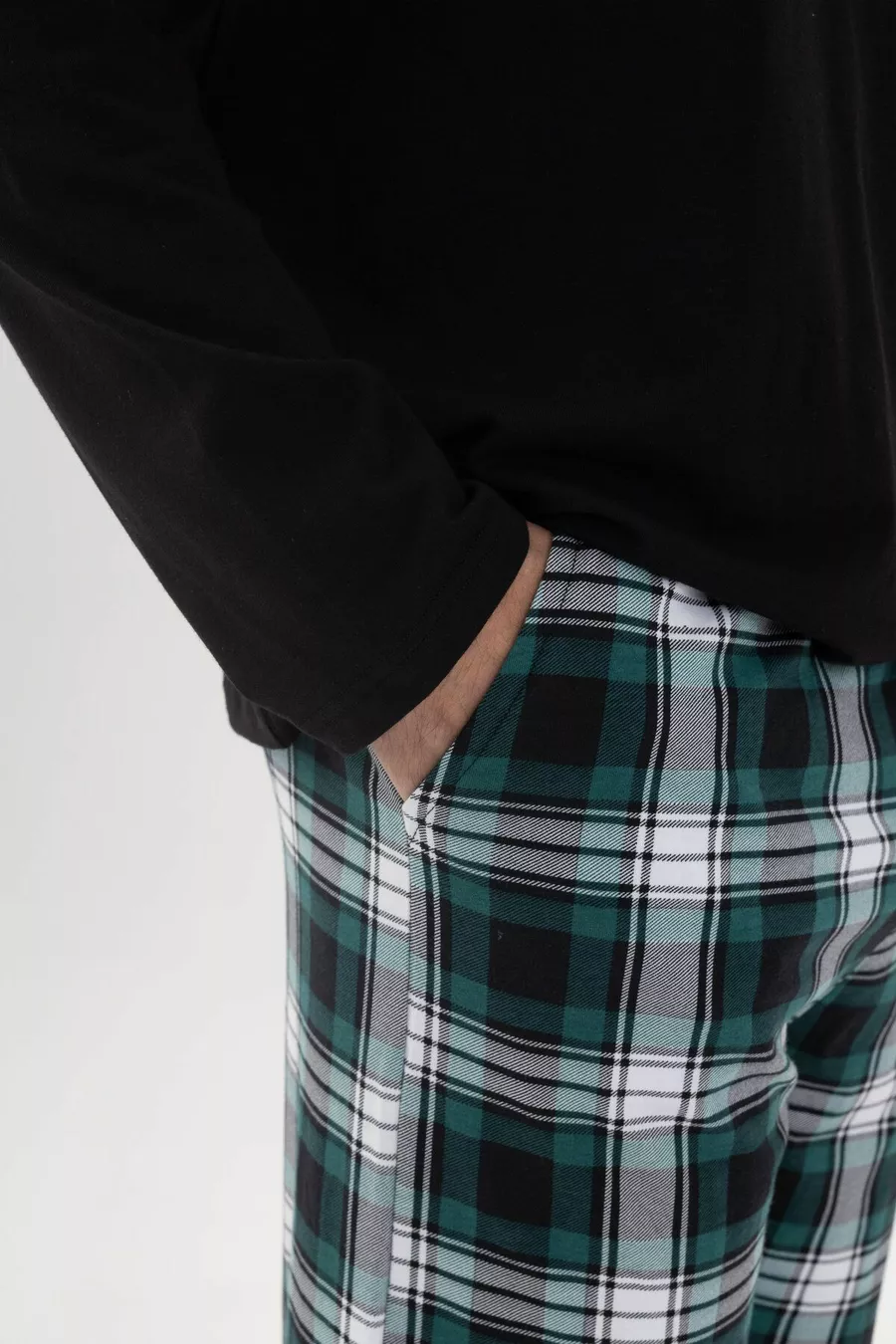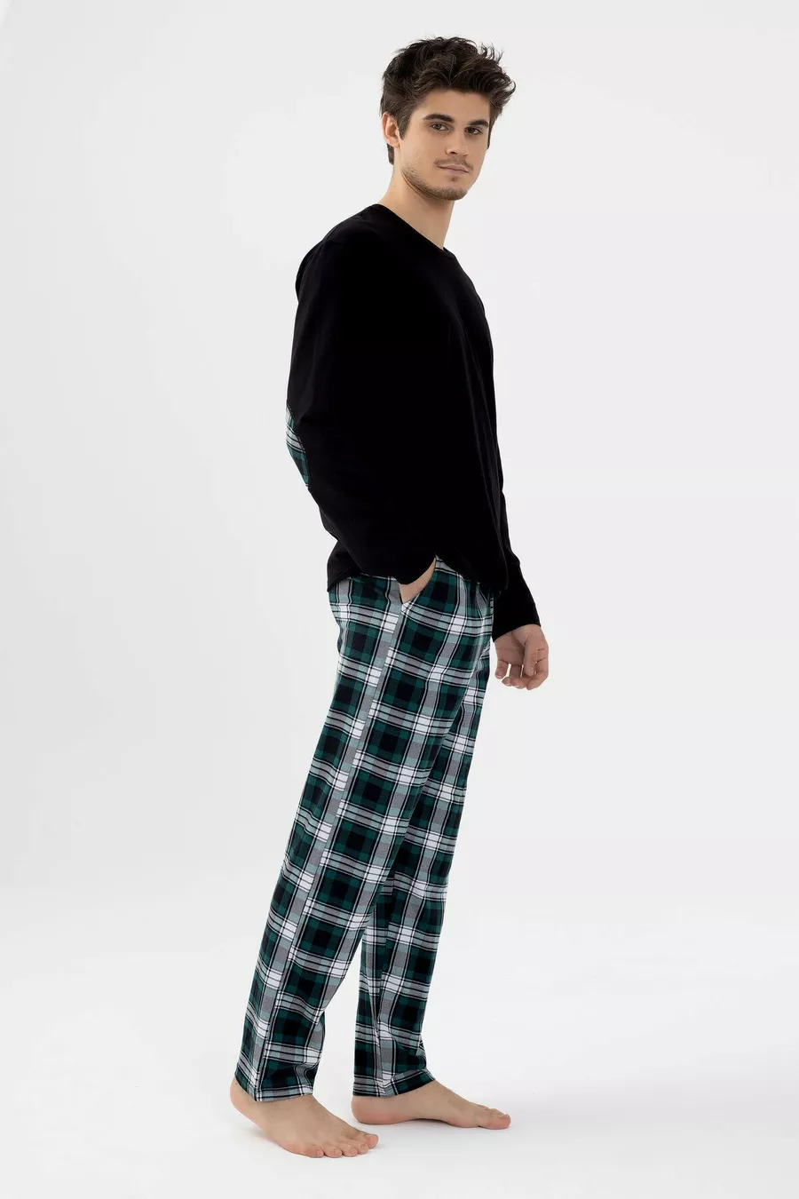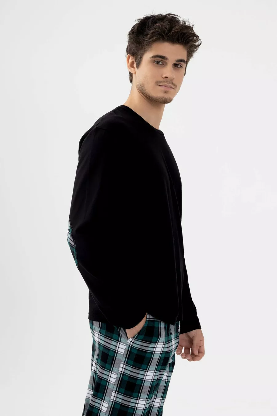 Herren Baumwoll-Pyjama-Set mit langen Ärmeln und karierten Flicken