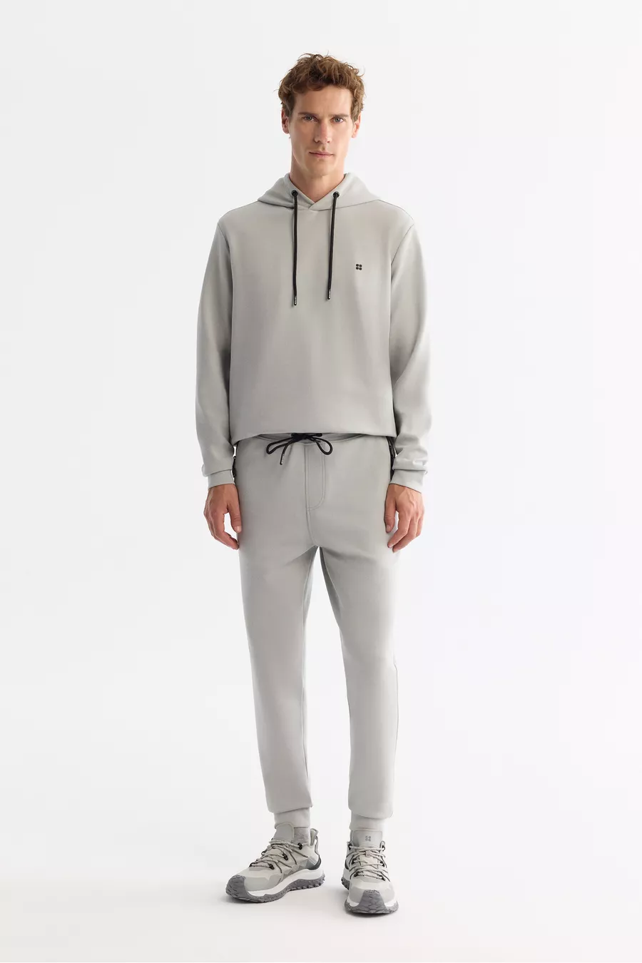 Herren Graue Jogginghose mit Elastischem Bund und Kordelzug, Bi-Stretch, Regular Fit
