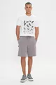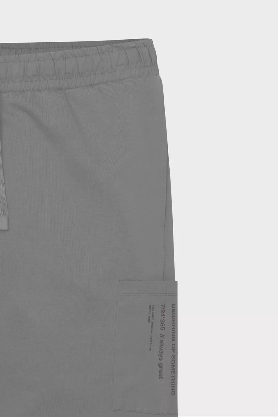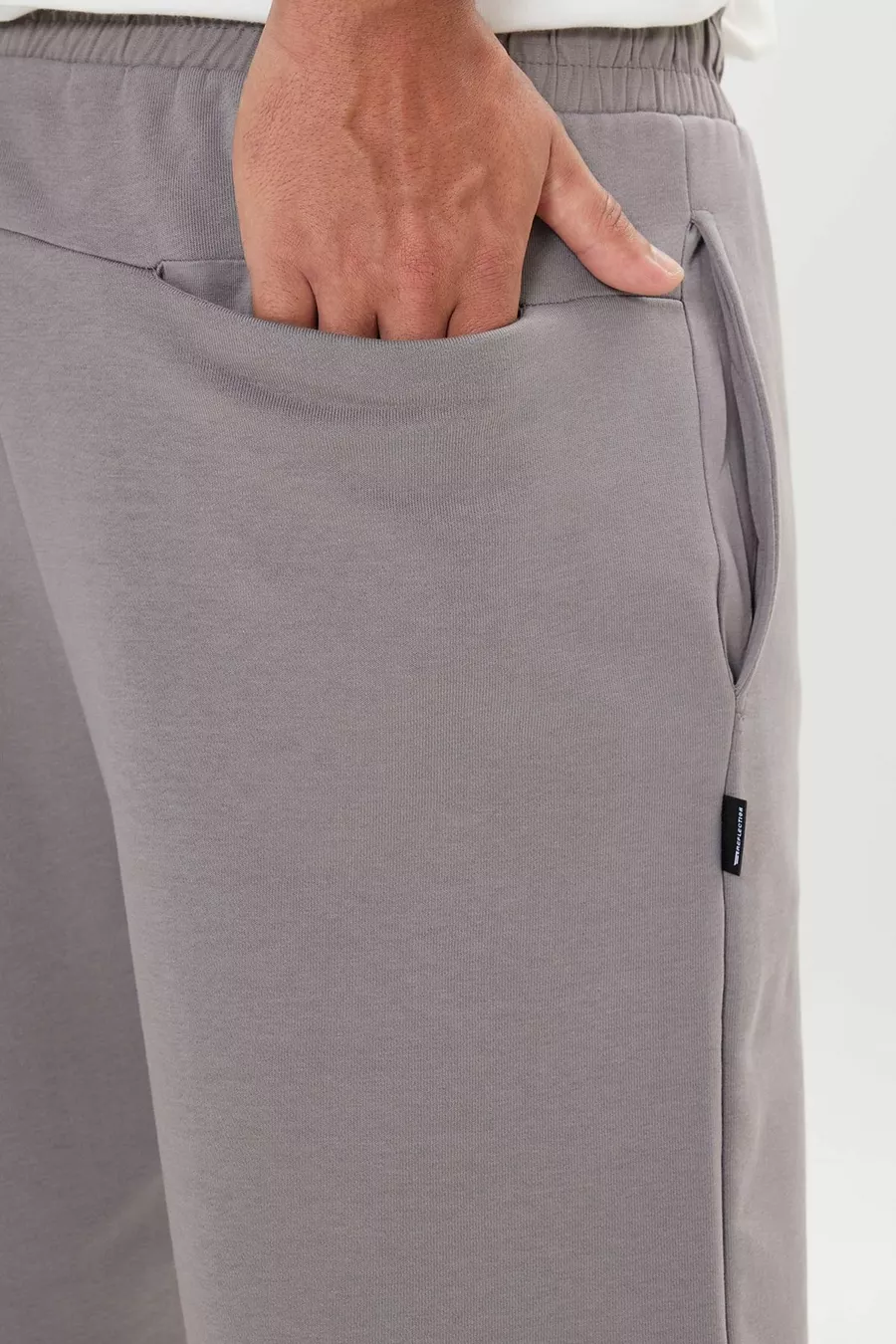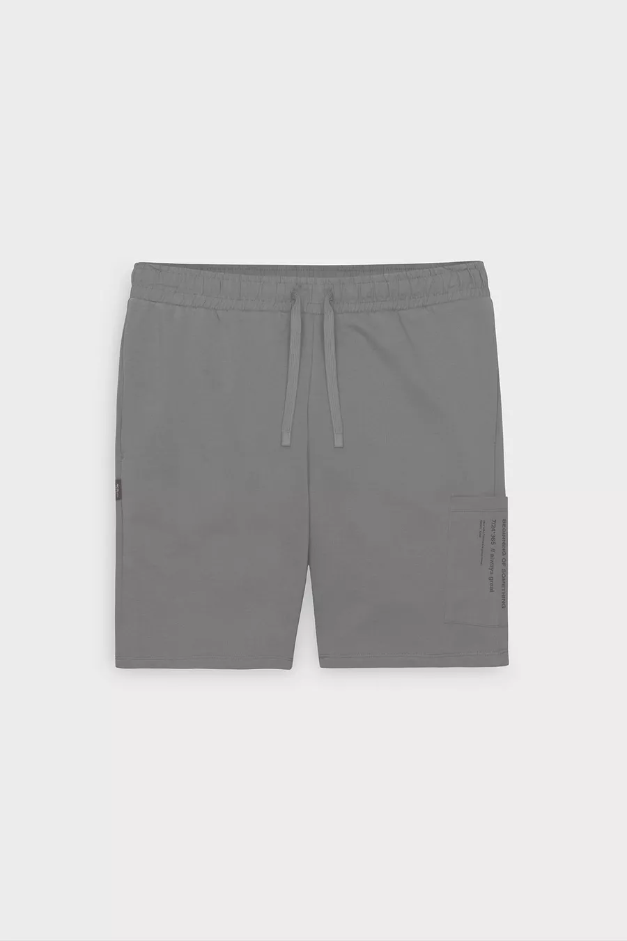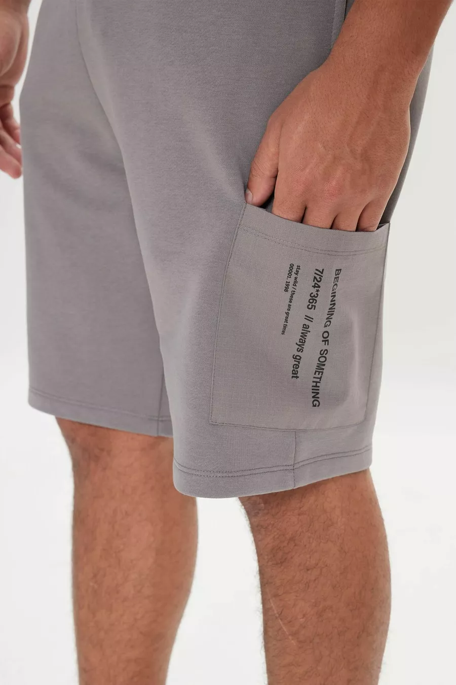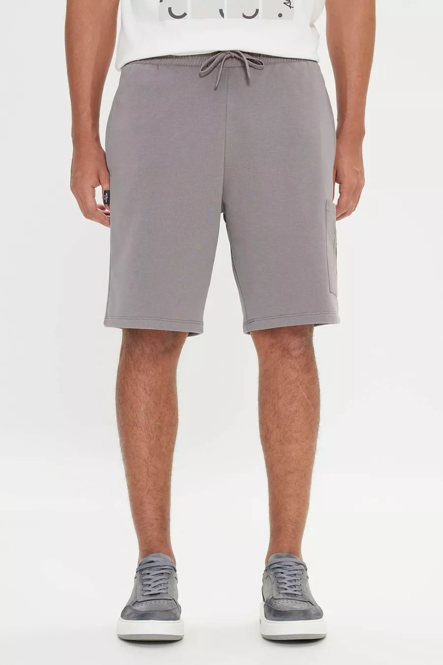 Herren Graue Standardfit Normaler Schnitt Baumwollstrick-Shorts mit Tasche