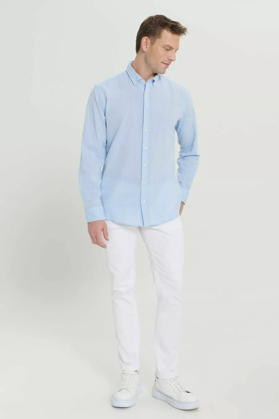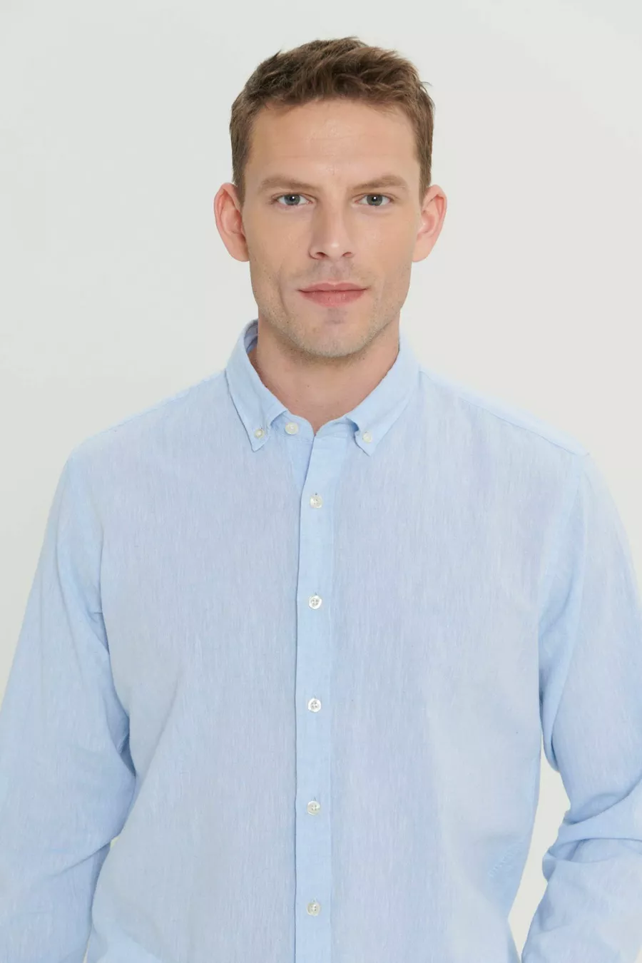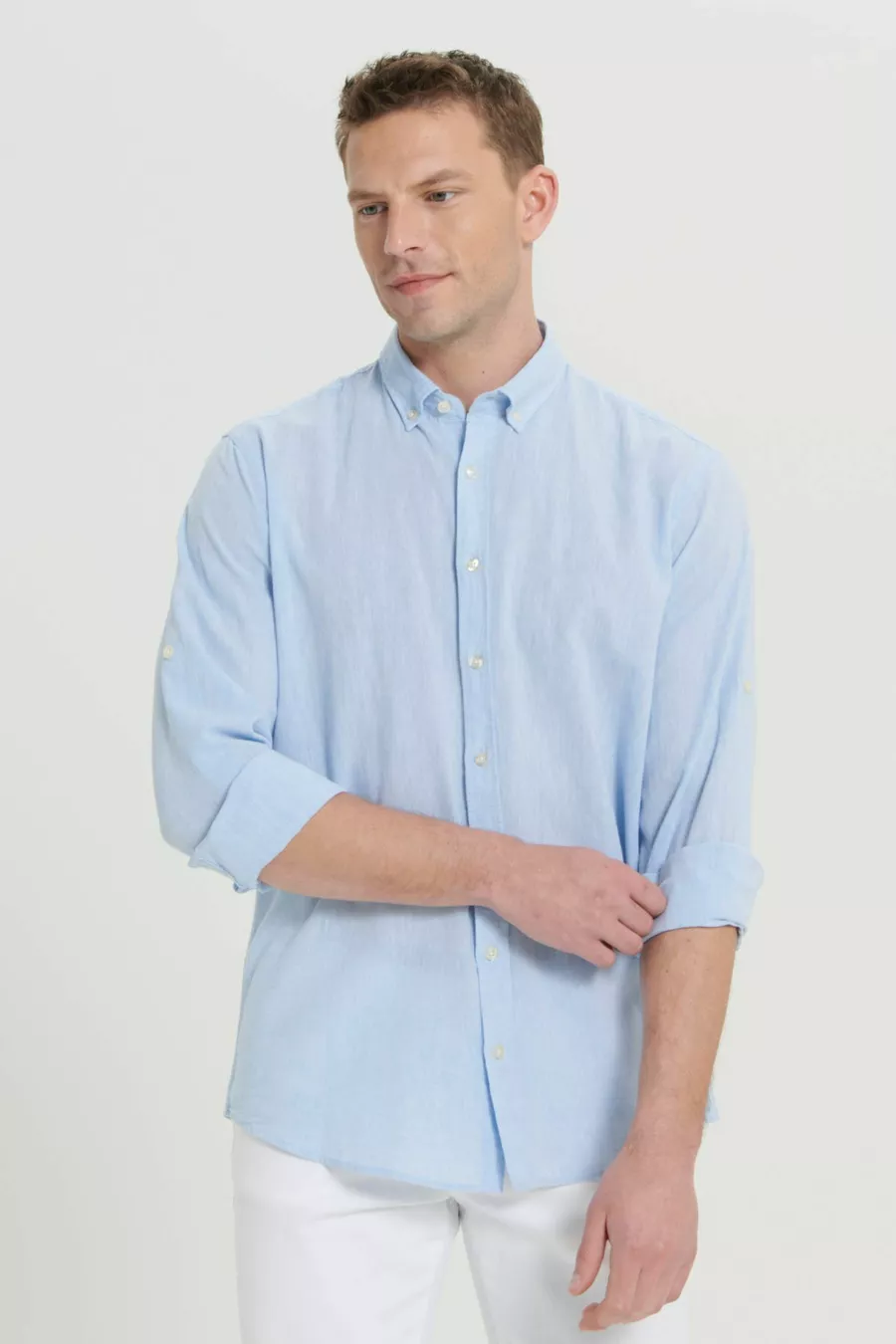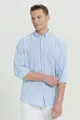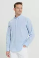 Herren Hellblau Leinen Comfort Fit Locker Geschnittenes Hemd mit Knopfleiste und Kragen
