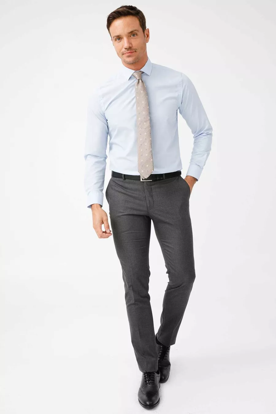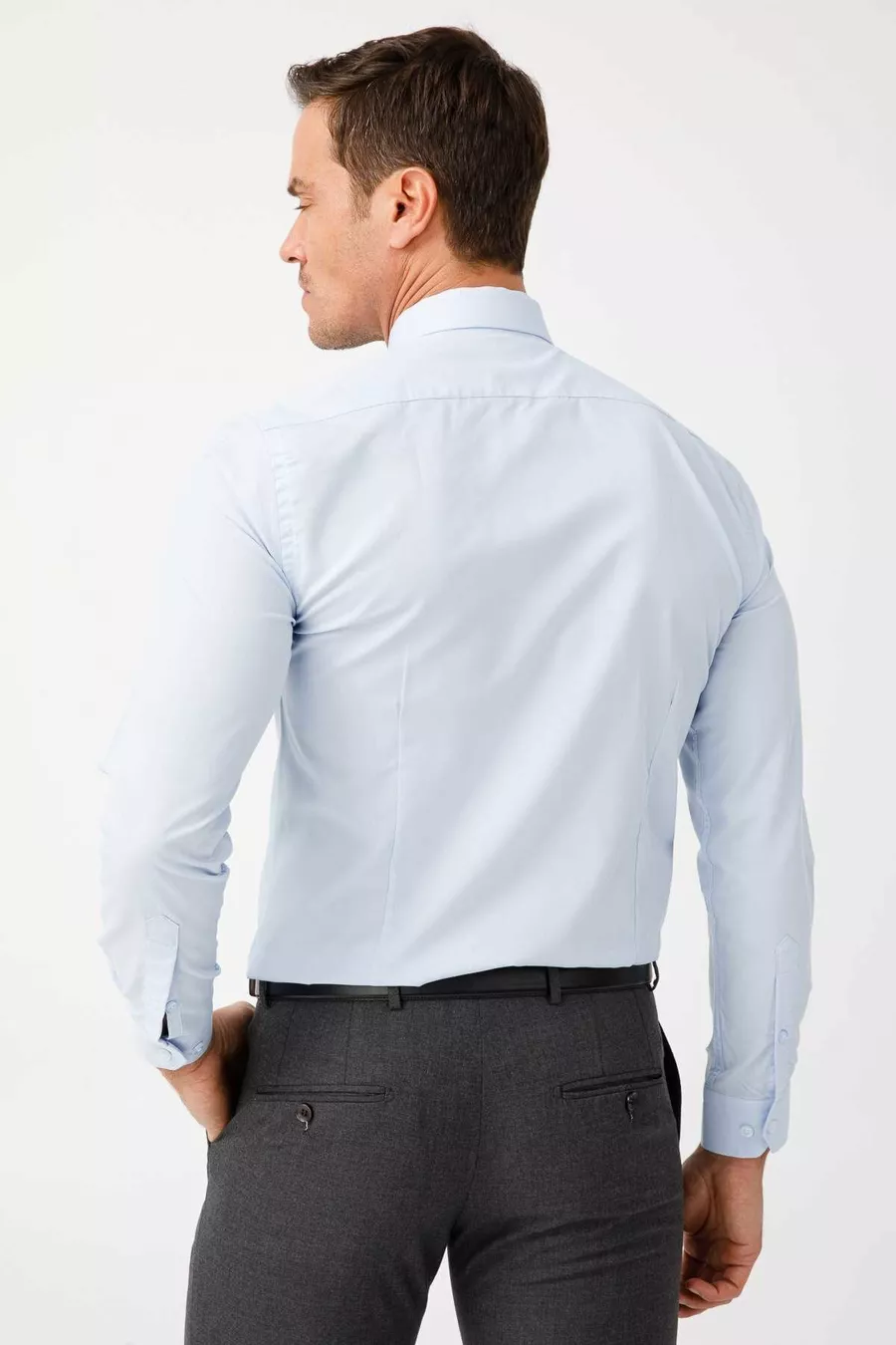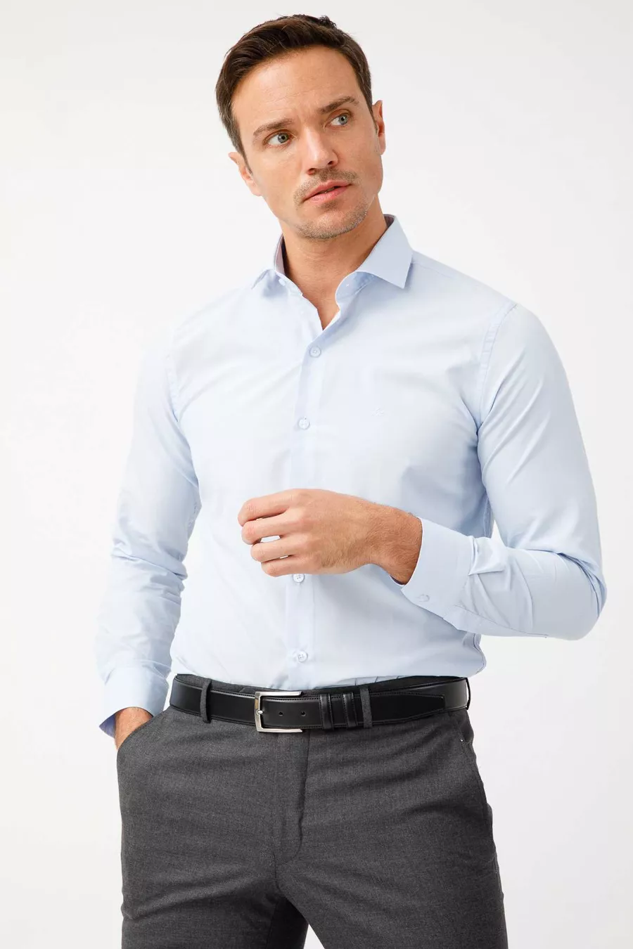 Herren Hellblau Slim Fit / Eng geschnitten Easy Iron (Bügelleicht) Basic Hemd