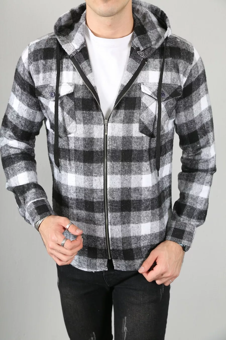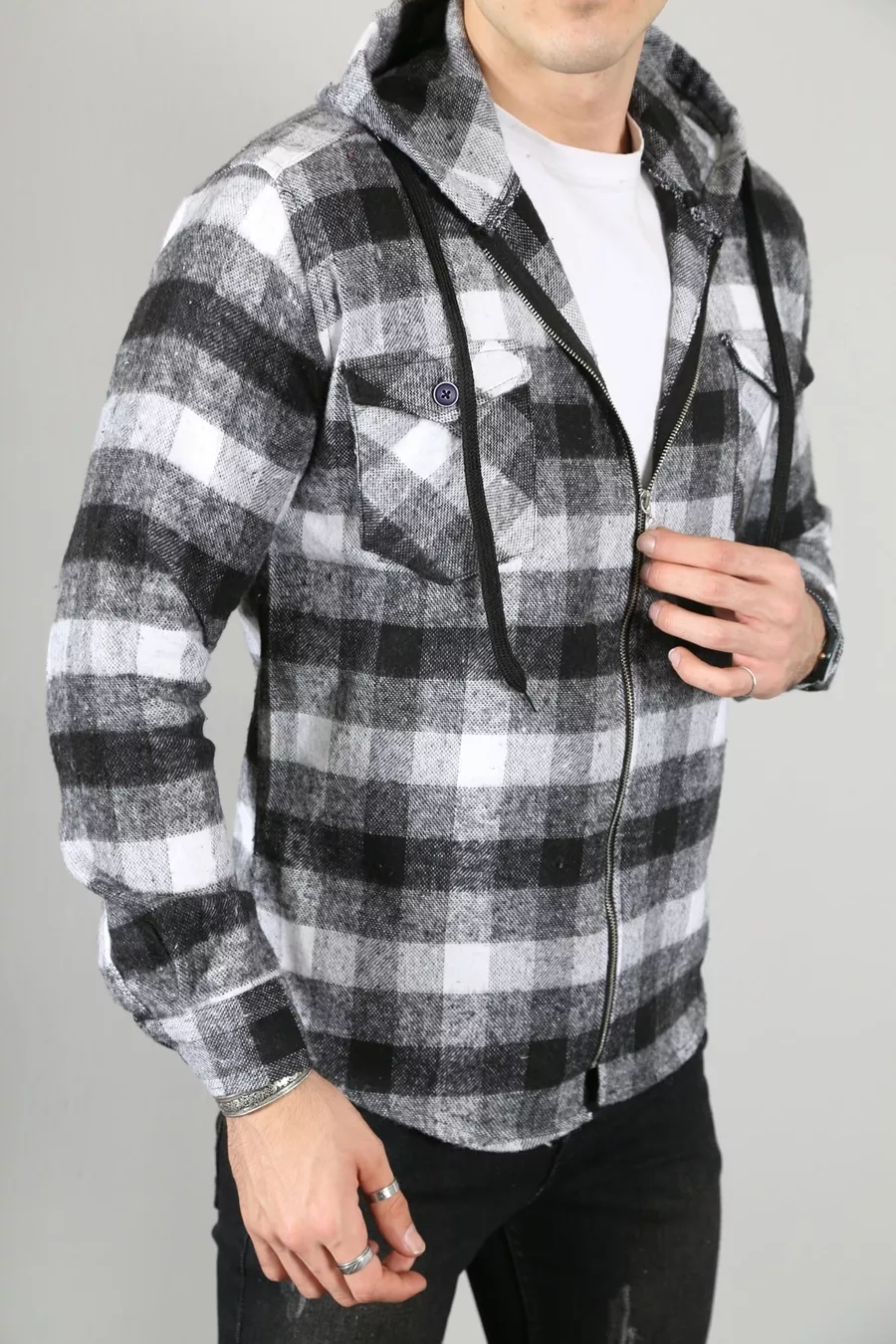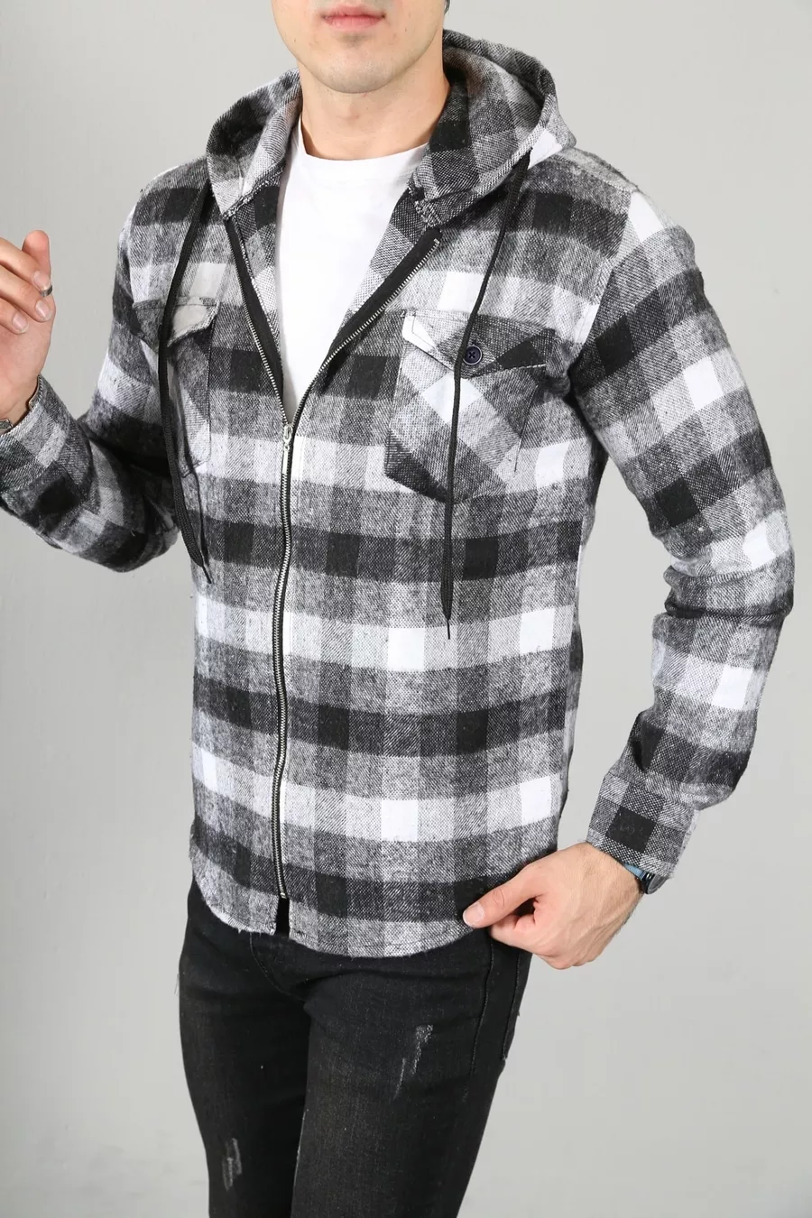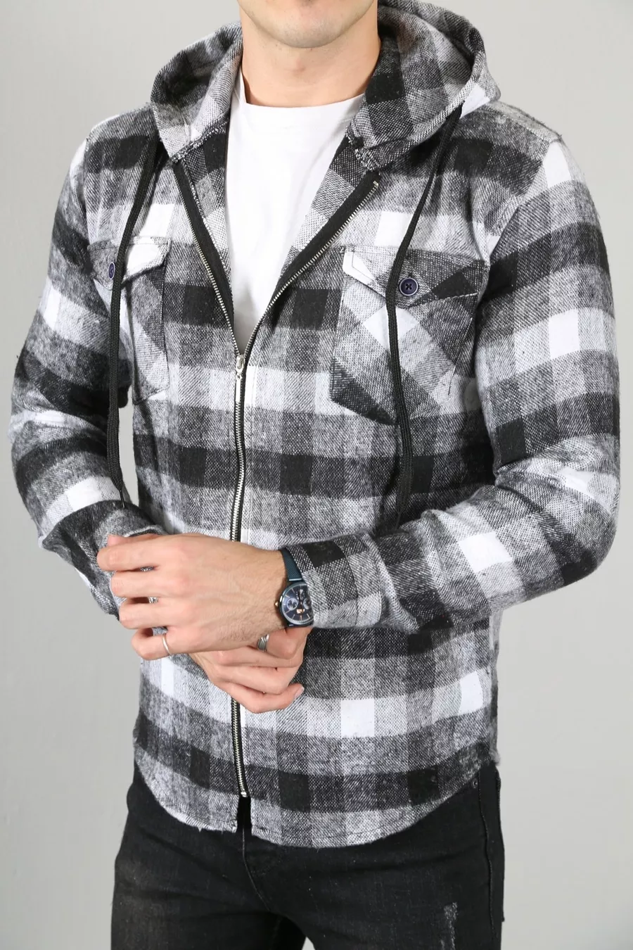 Herren-Langarmhemd mit Kapuze und Reißverschluss
