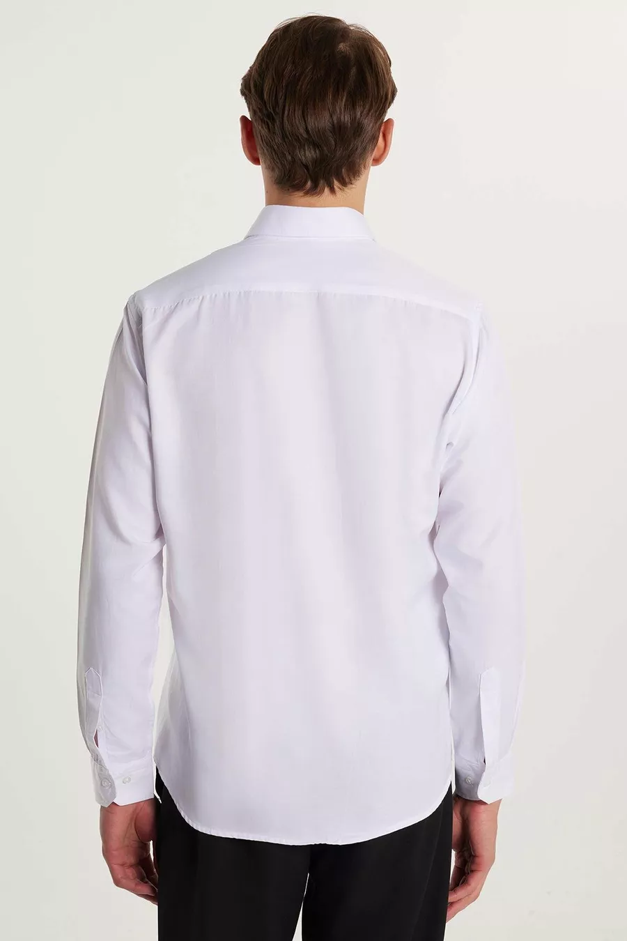 Herren Regular Fit Klassisches Slim-Fit Hemd mit geradem Kragen, Knöpfen und Taschen, Weiß