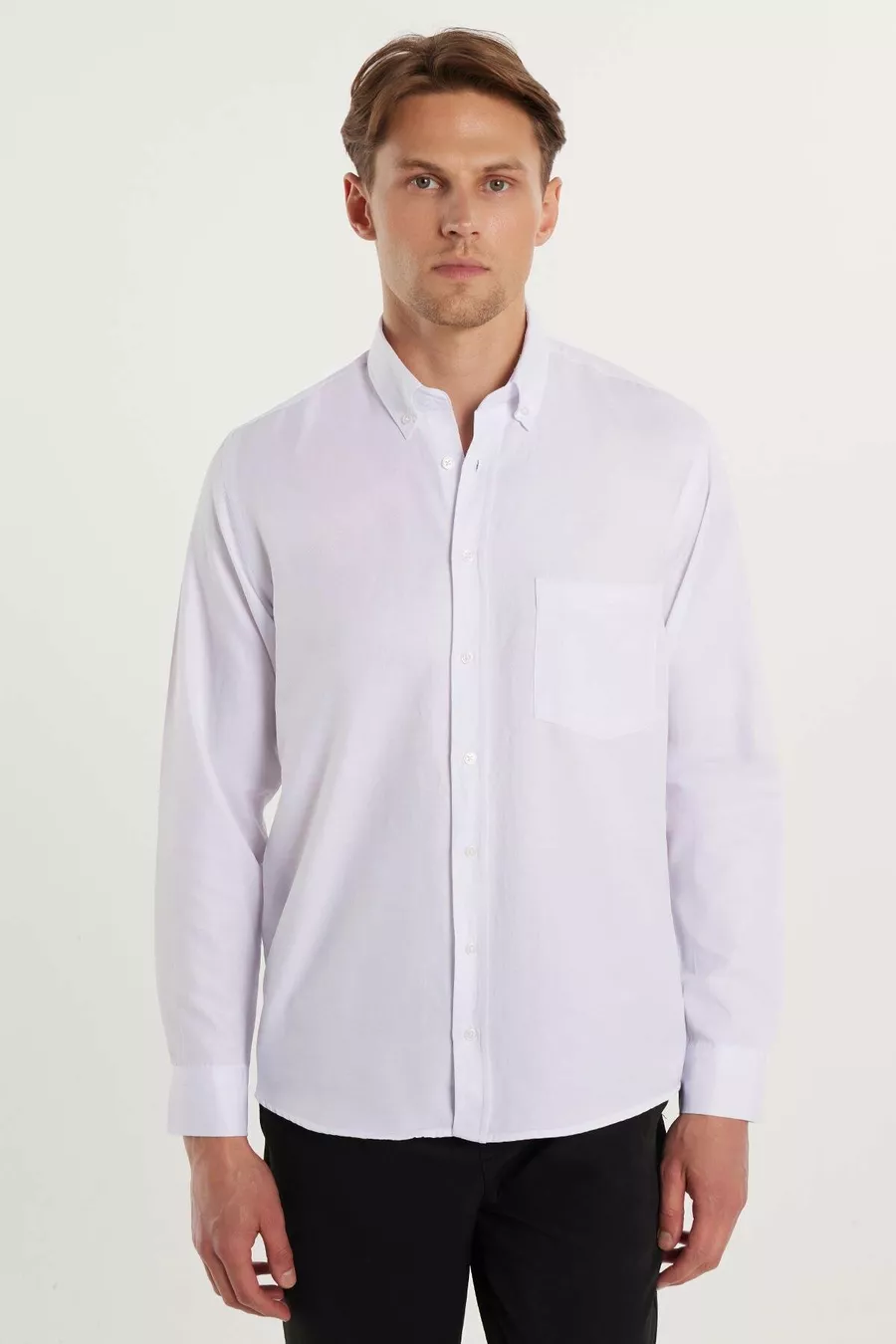 Muster: Gewebt Schnitt: Regular Kragenart: Hemdkragen mit Knöpfen Stoffart: Gewebe Ärmelform: Langarm Farbe: Weiß Material: Baumwolle Verschlussart: Knöpfe Produktdetails: Mit Taschen Taschen: Mit Taschen Ärmellänge: Lang Kollektion: Basic Länge: Standard Anlass: Casual/Alltag Silhouette: Basic Zusätzliche Eigenschaften: Keine zusätzlichen Eigenschaften Druck/Sticktechnik: Ohne Druck Persona: Cool & Komfort Nachhaltigkeitsdetails: Nein Gürtel-/Bundzustand: Ohne Gürtel Materialzusammensetzung: 57% Baumwolle, 43% Polyester Waschanleitung: Type 1 Saison: Alle Jahreszeiten Herkunft: TR Verpackungszustand: Ohne Verpackung