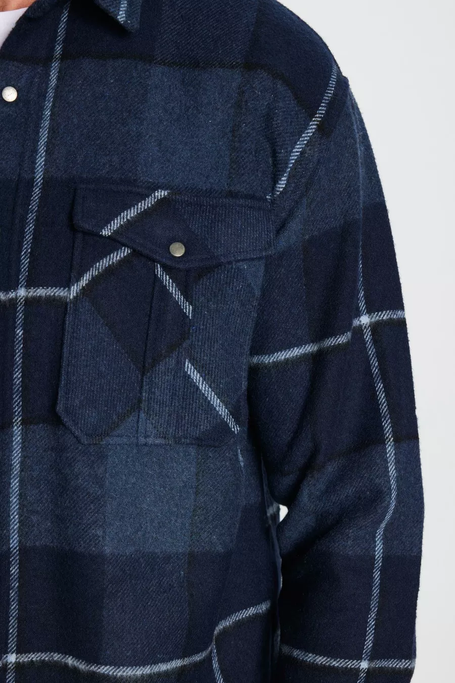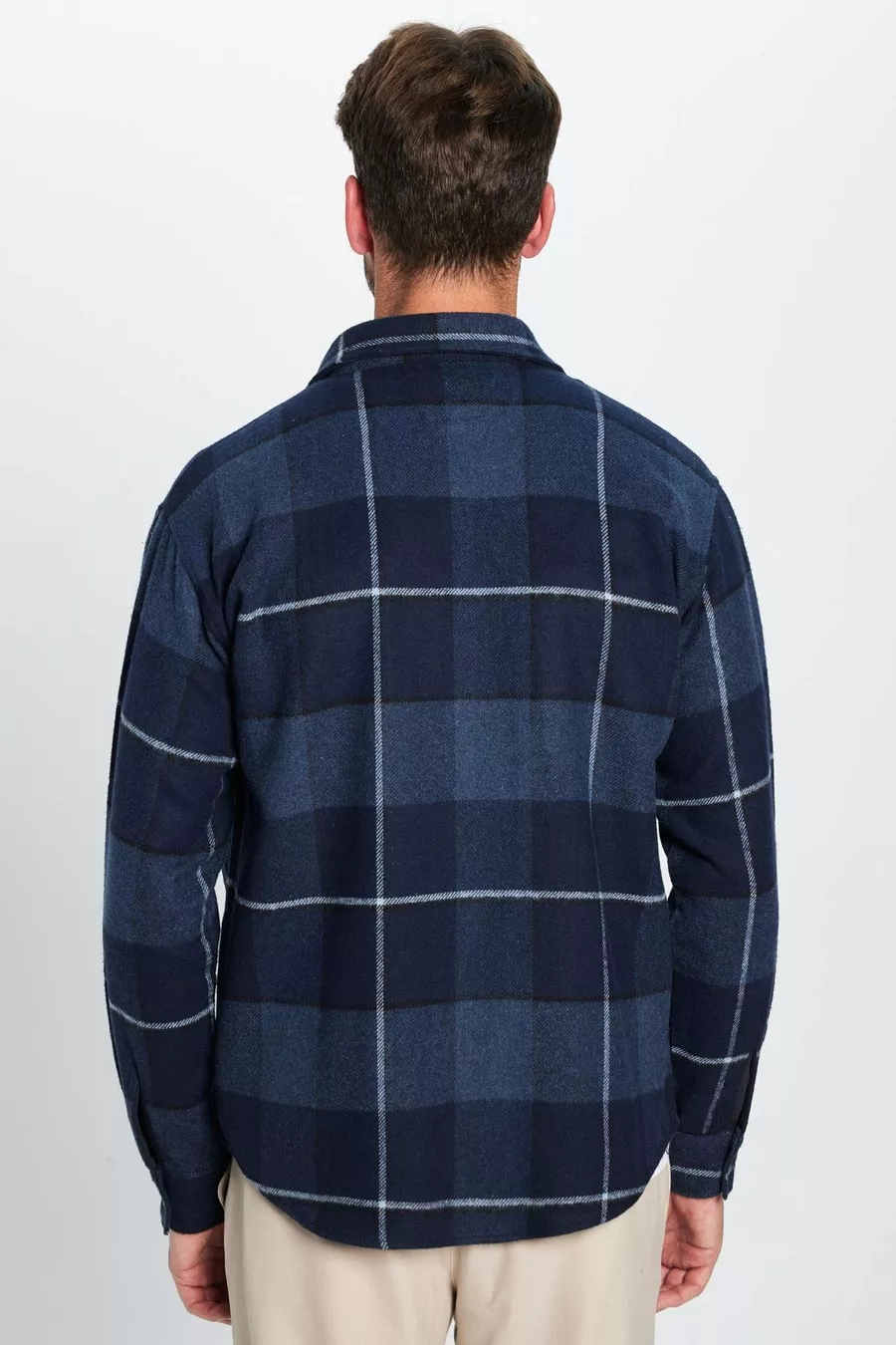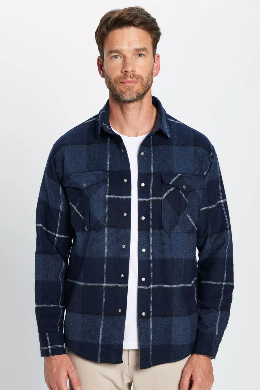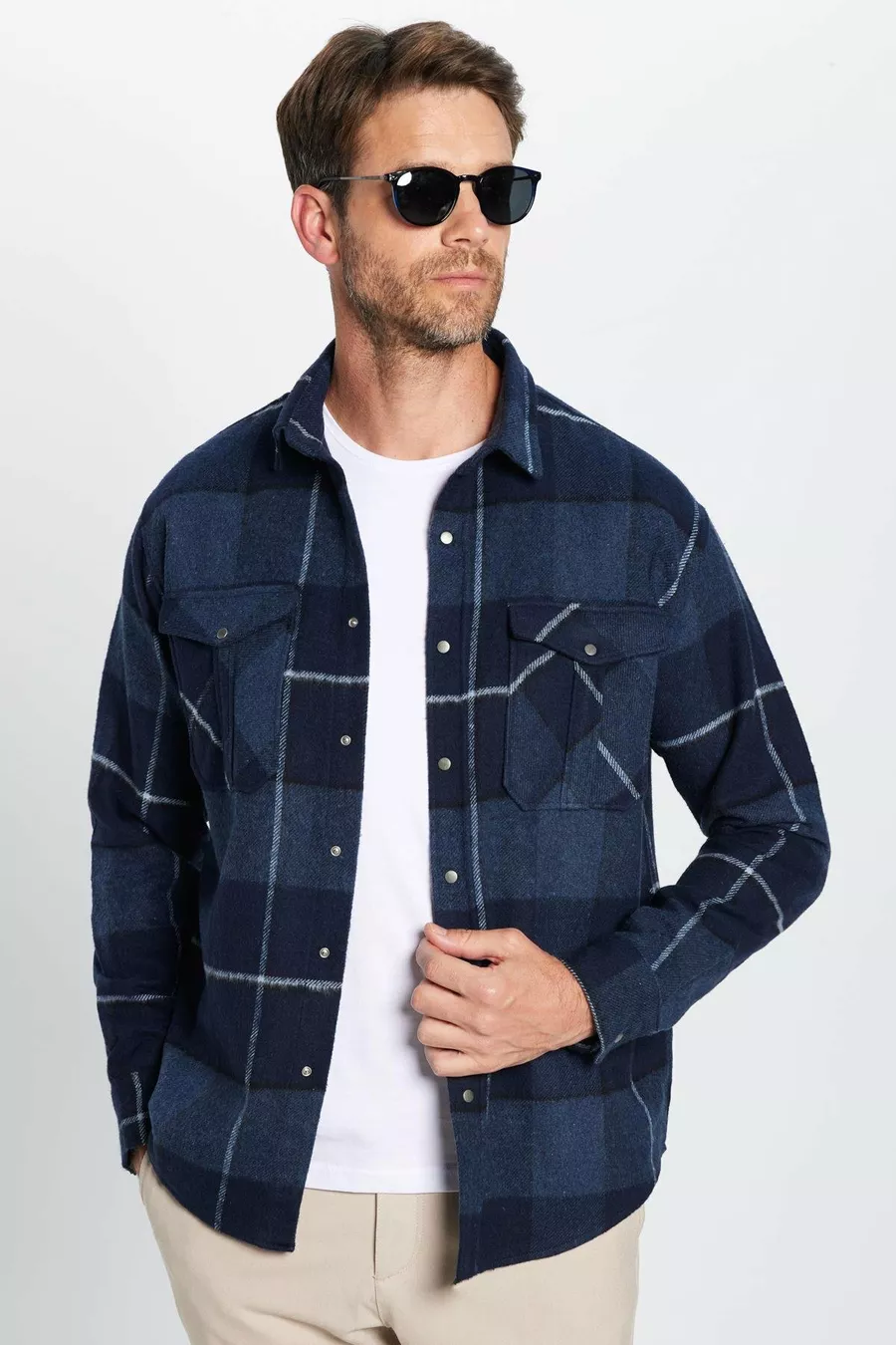 Herren Relaxed Fit Bequeme Passform Kariertes Winterhemd mit Doppelten Brusttaschen und Knöpfen