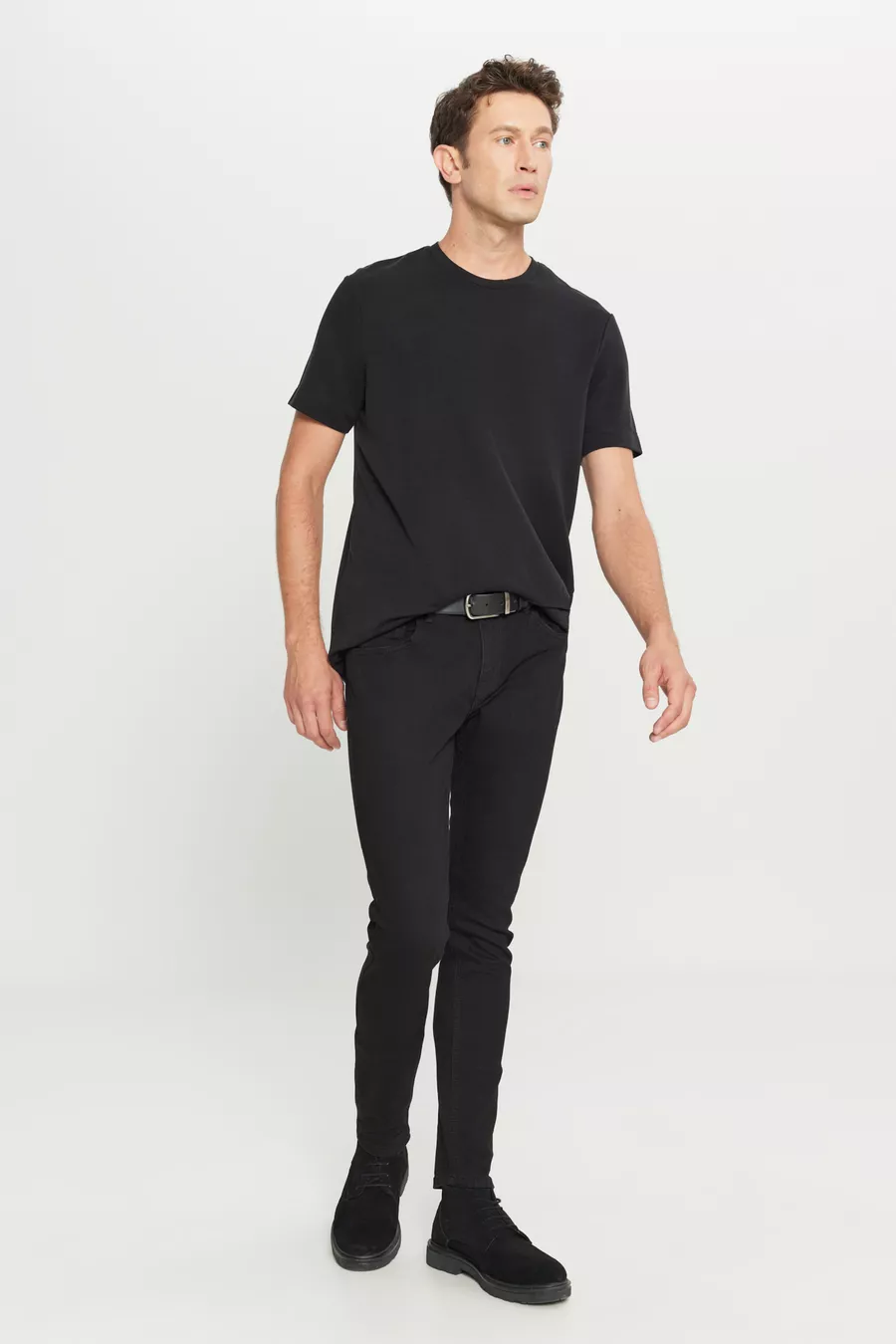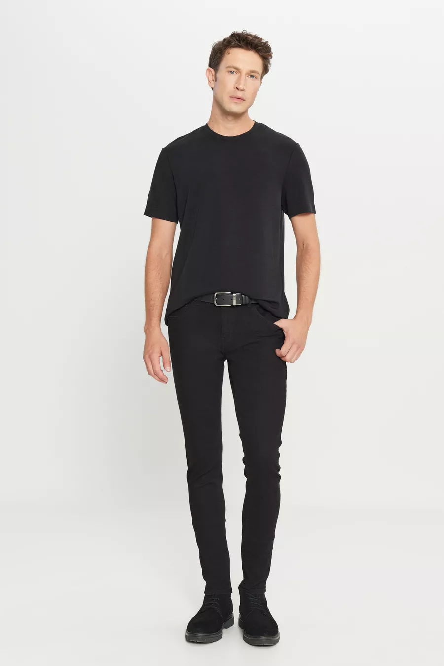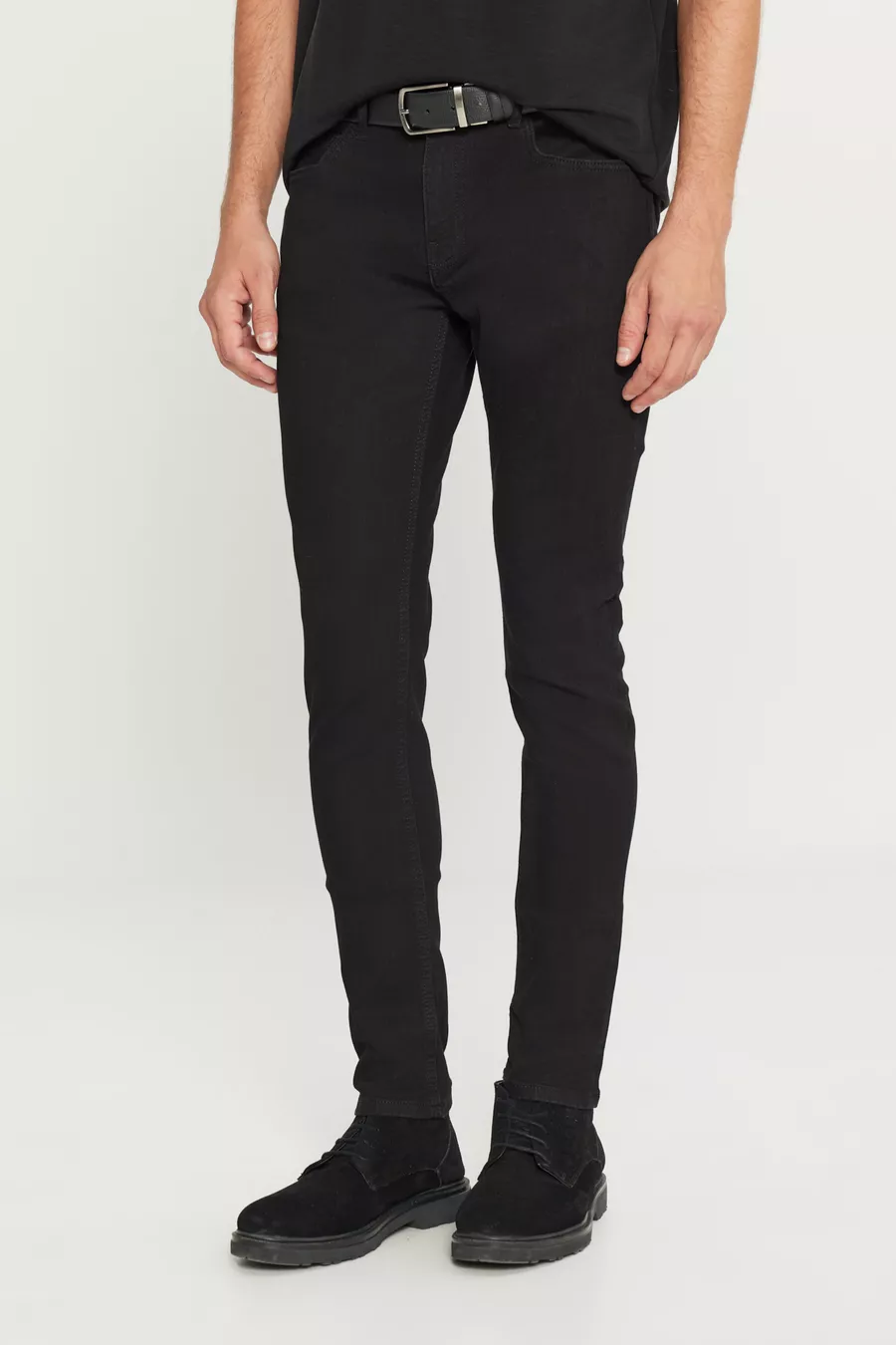 Herren Schwarz Extra Slim Fit Eng Geschnittene Rıss Baumwollstretch Denim Jeans