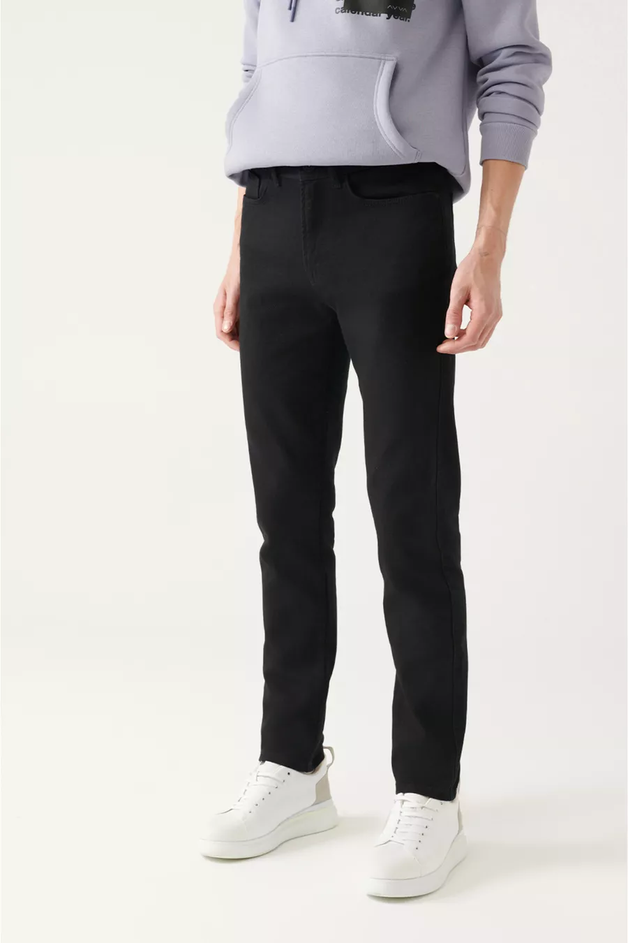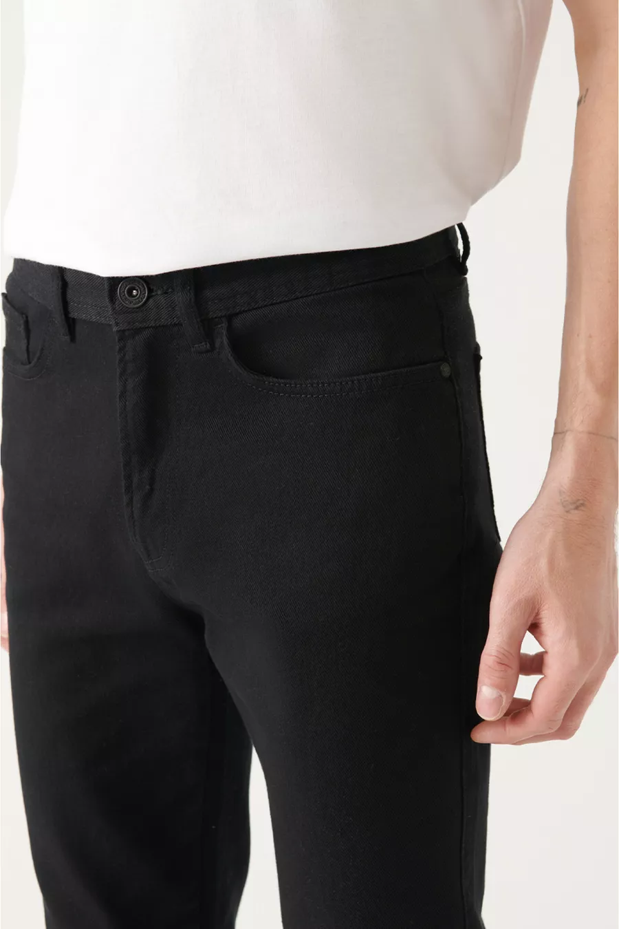Herren Schwarze Basic 5-Pocket Baumwoll Slim Fit Hose