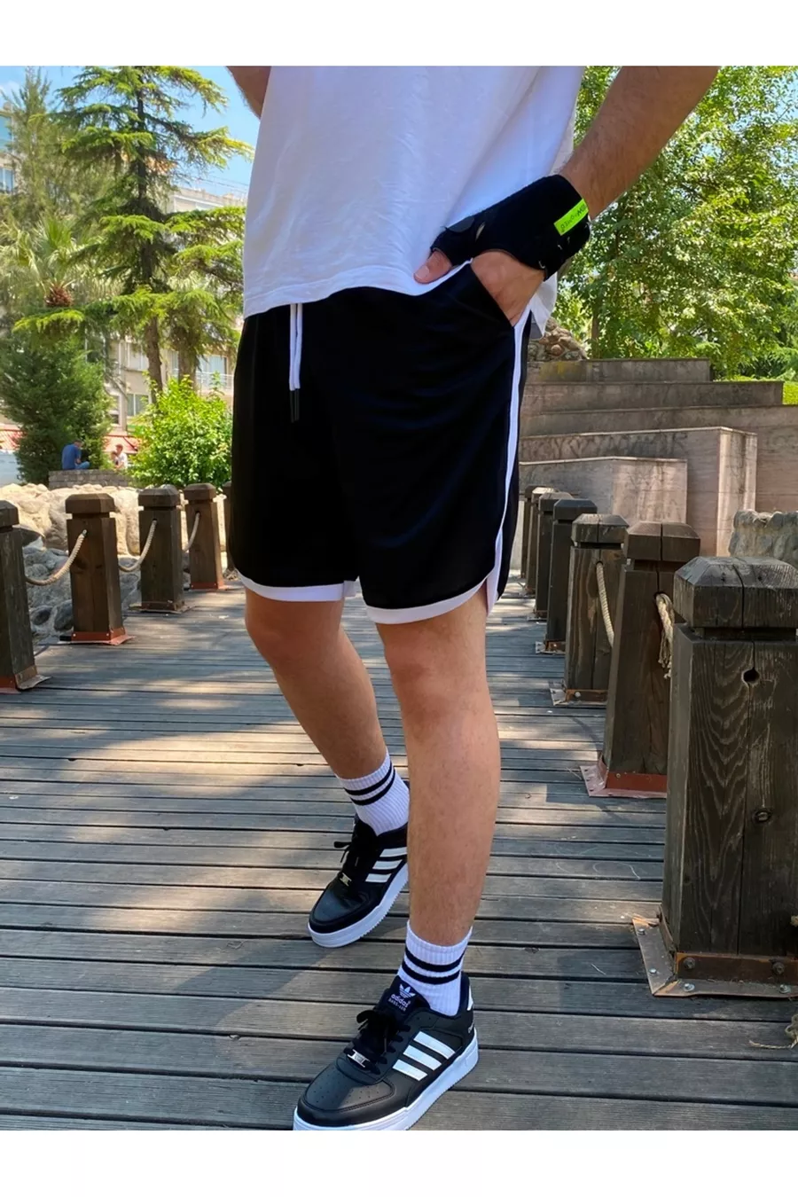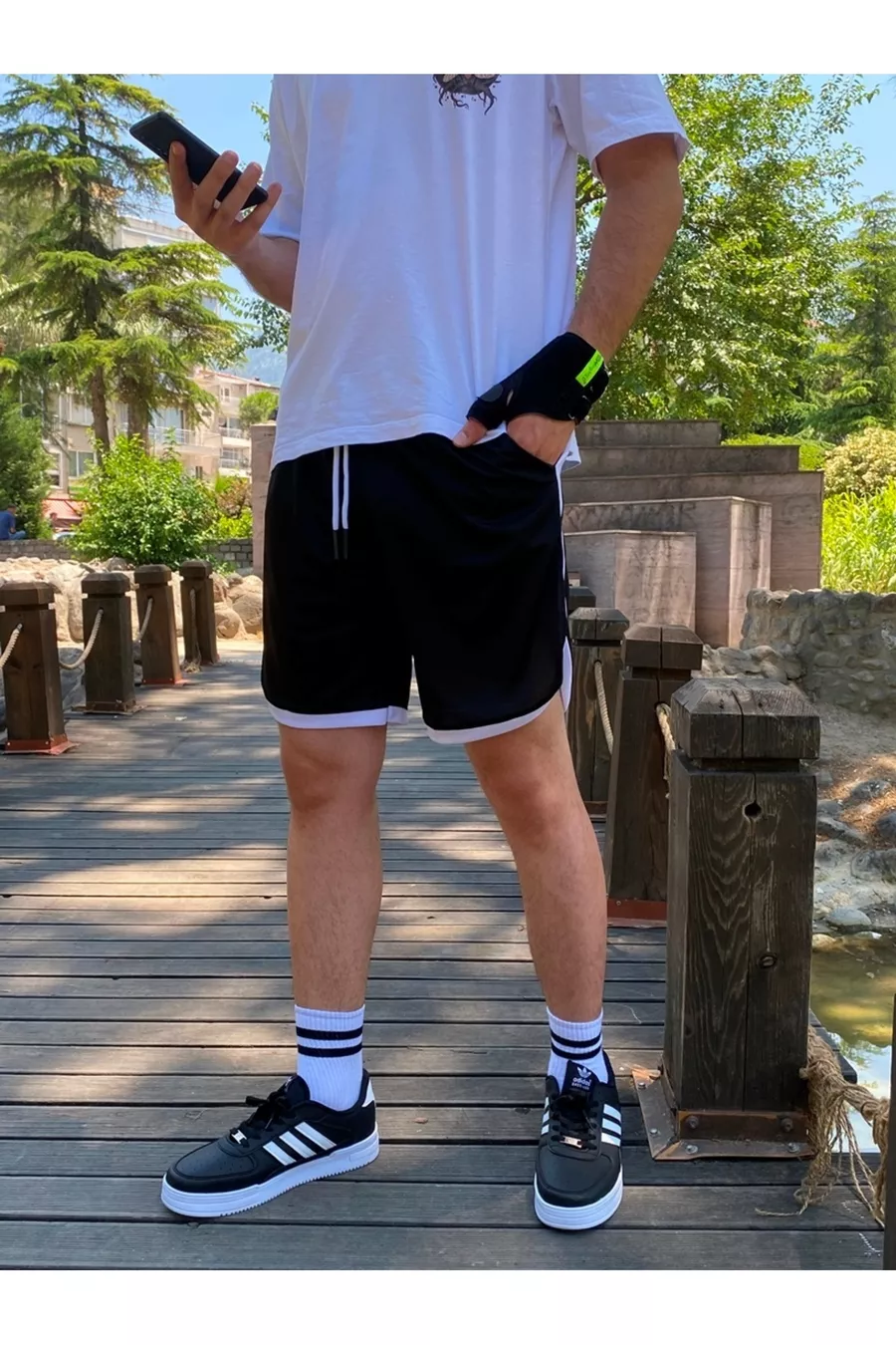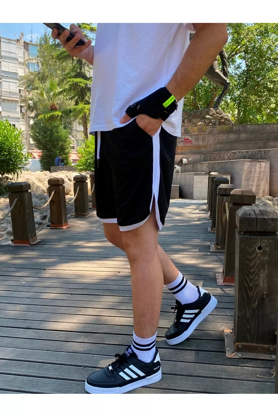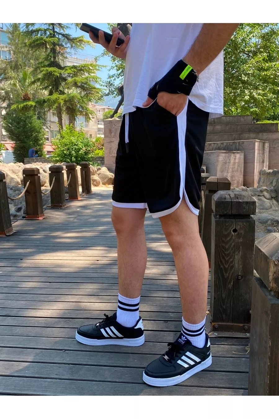 Herren Schwarze Gestreifte Tägliche Baumwollshorts Basketball Fußball Fitness Sport Training Lauf Bermuda