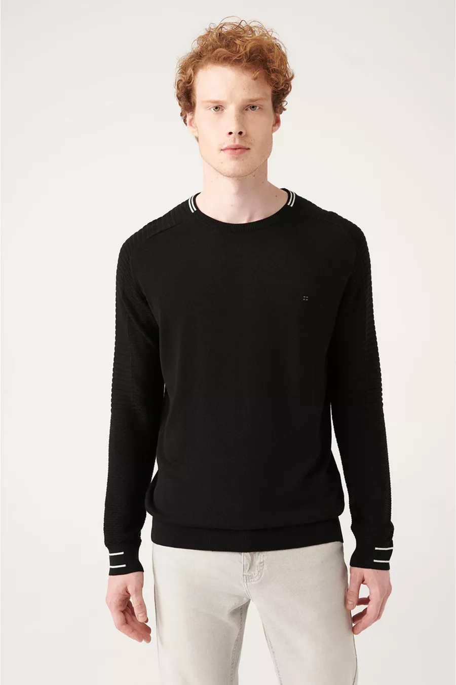 Herren Schwarzer Pullover mit Rundhalsausschnitt aus weichem Strick