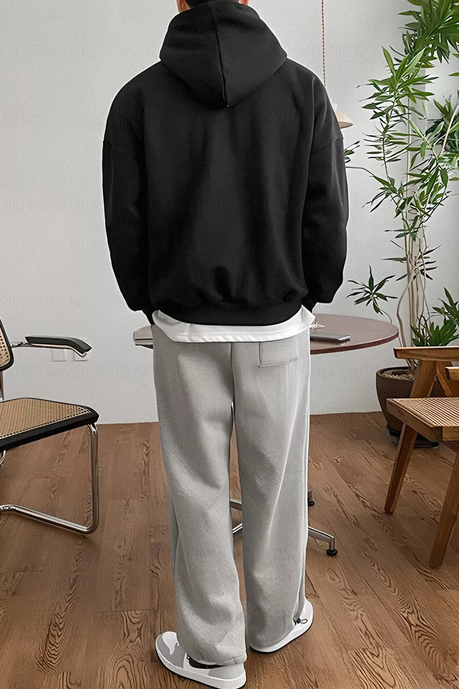 Herren Schwarzer Einfarbiger Kapuzenpullover Oversize, 3-fädig, Floraler Weichstoff, Lässiger weiter Schnitt Hoodie Sweatshirt