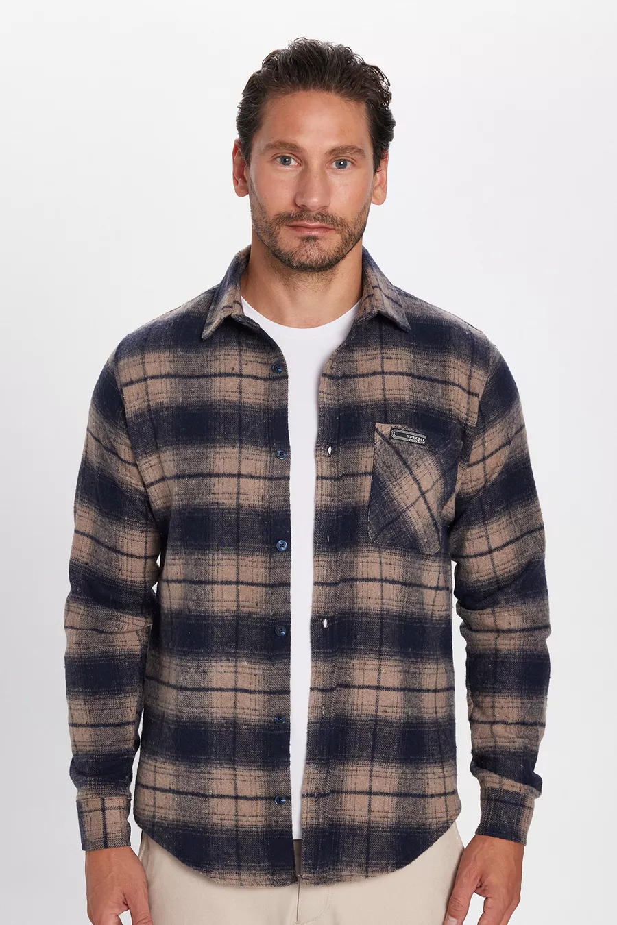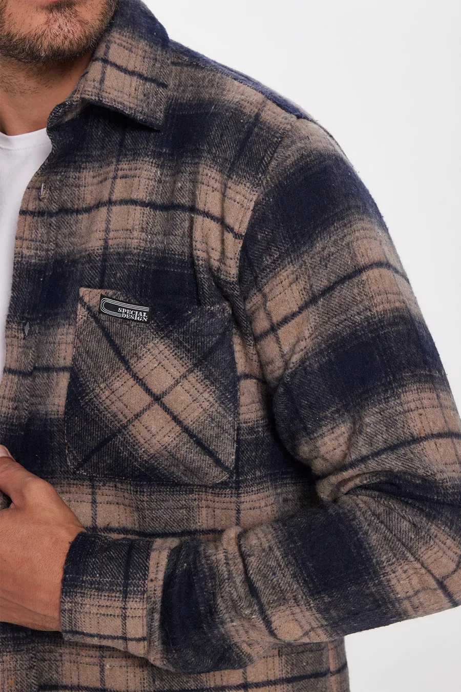 Herren Slim Fit Enganliegendes Lumberjack-Hemd mit einer Tasche Kariert Winterhemd