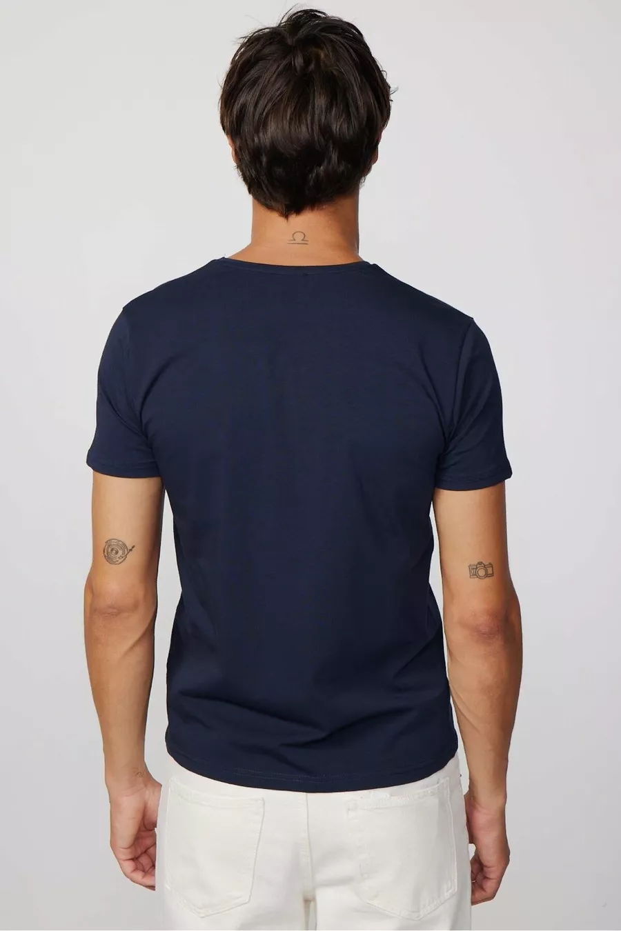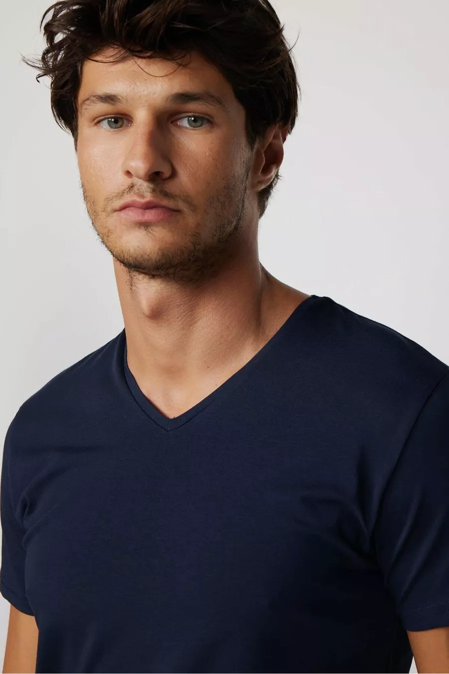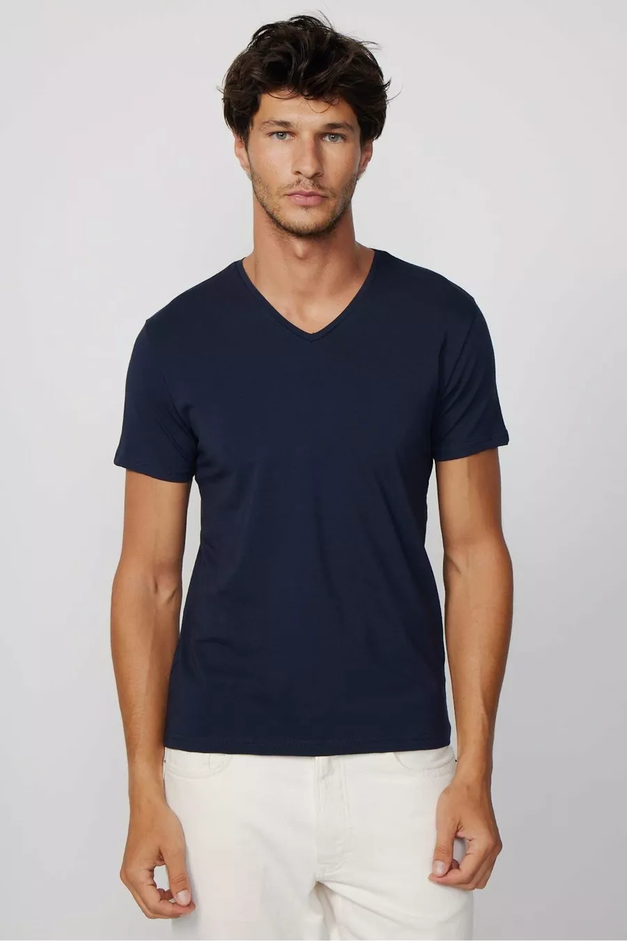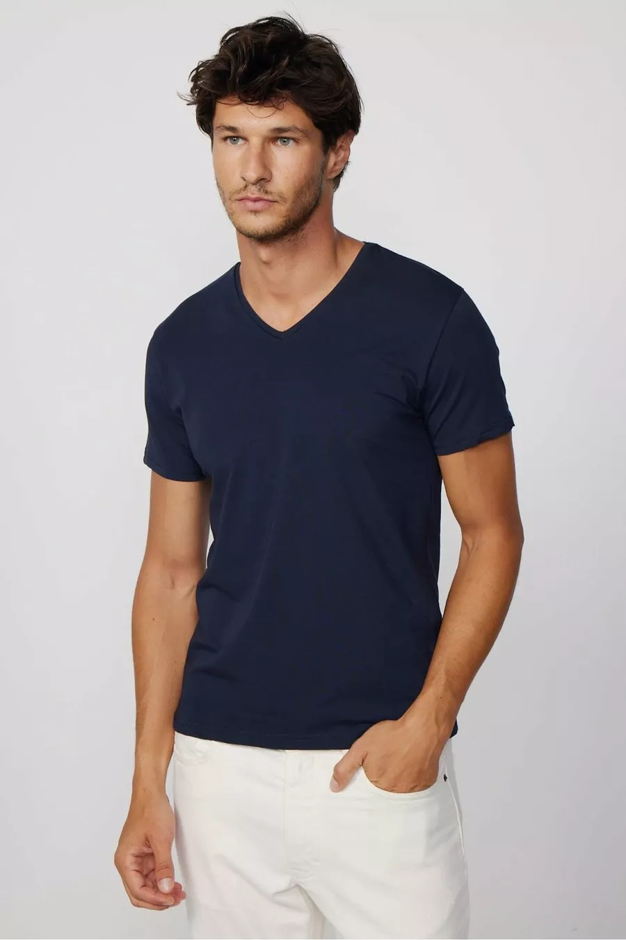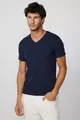 Herren Slim Fit Enganliegendes Baumwoll-T-Shirt mit weichem Stoff, elastischem Gewebe, einfarbig, Basic, dunkelblau, V-Ausschnitt