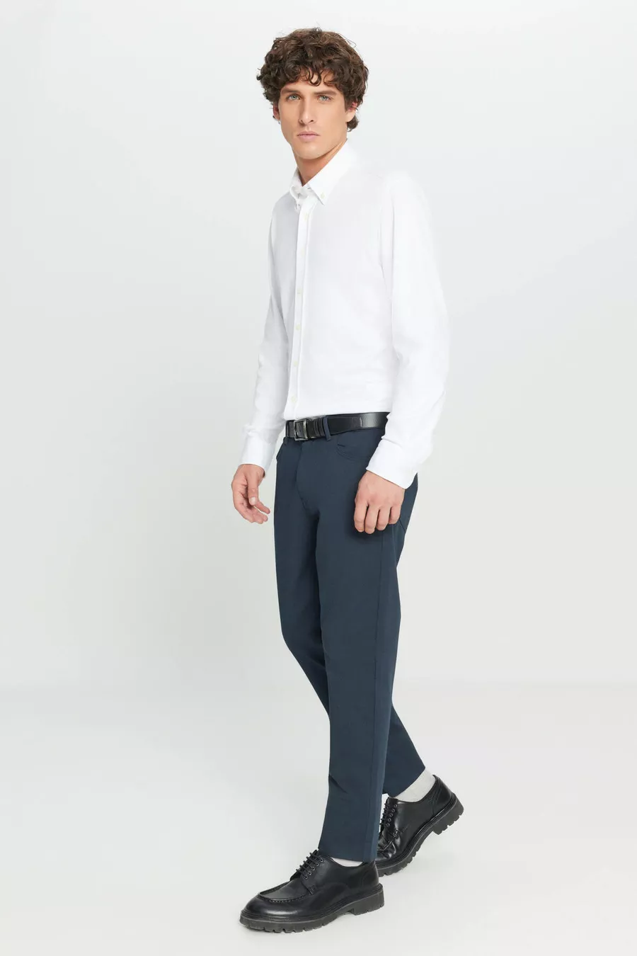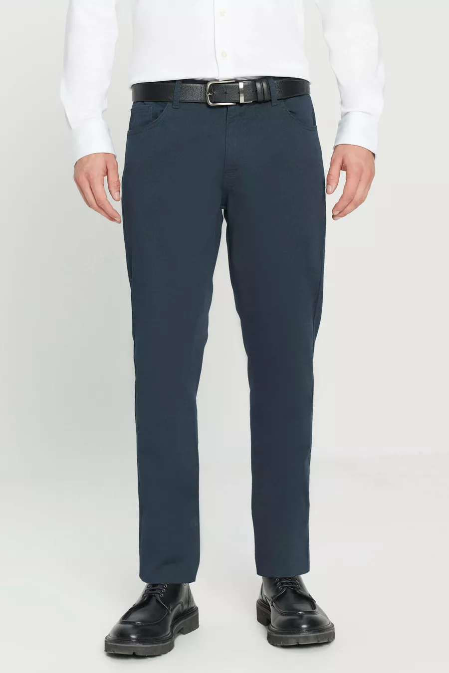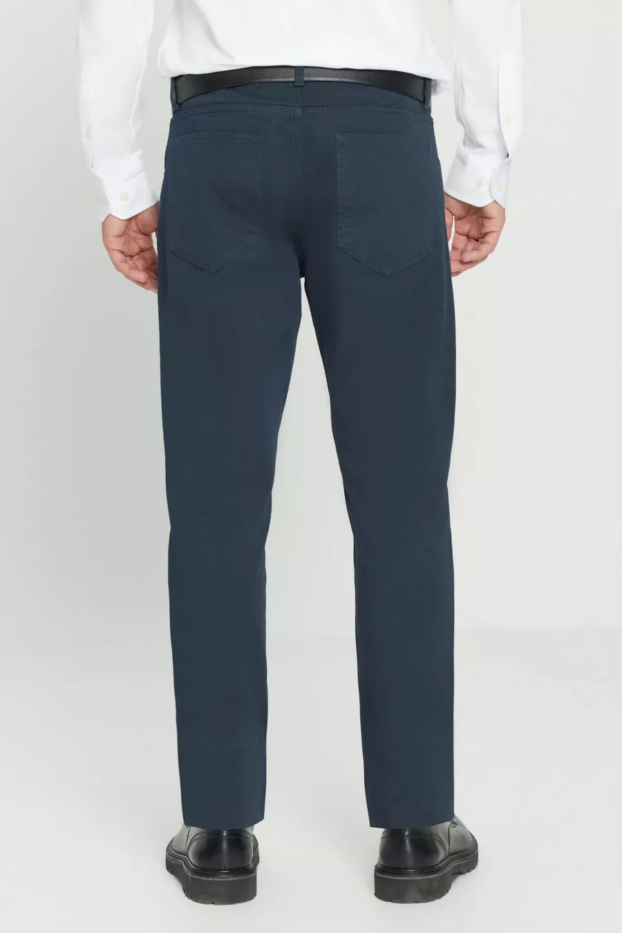 Herren Slim Fit Dunkelblau Eng geschnittene 5-Taschen Baumwoll-Canvas Stretch Chinohose