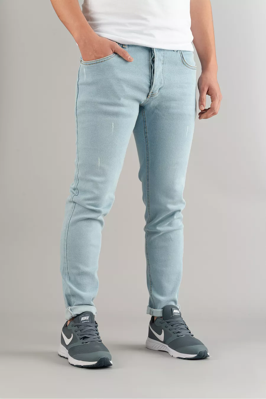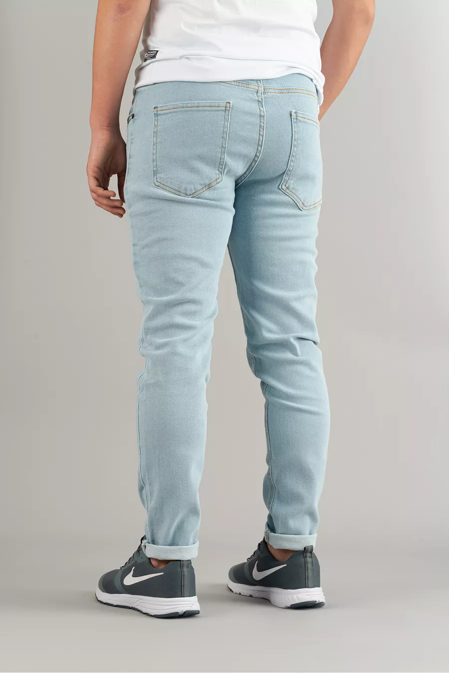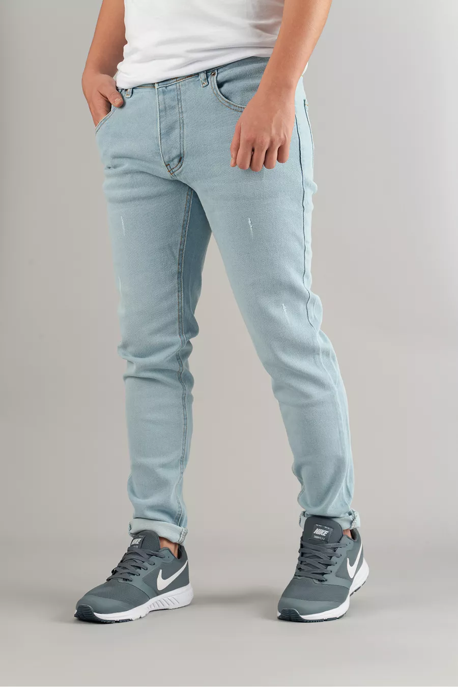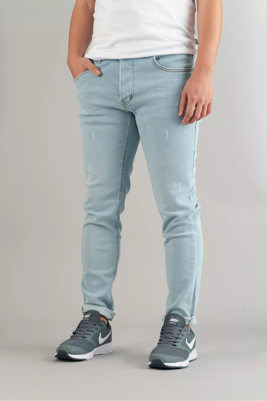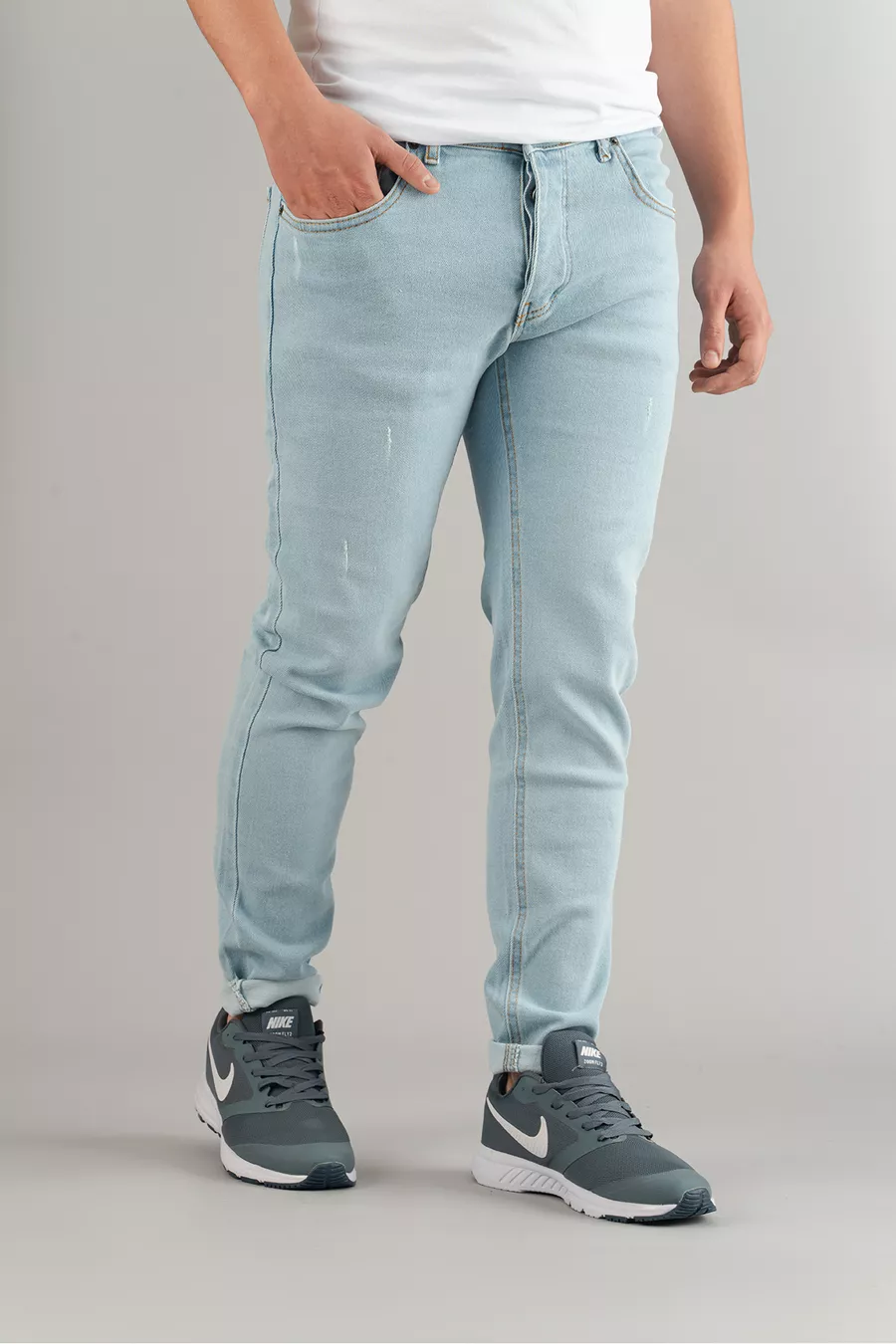 Herren Slim Fit Eng geschnittene Jeans mit Ziernähten in Eisblau