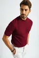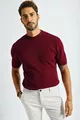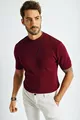 Herren Strickpullover mit kurzem Ärmel, geripptem Rundhalsausschnitt, dünn,