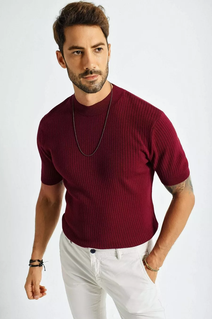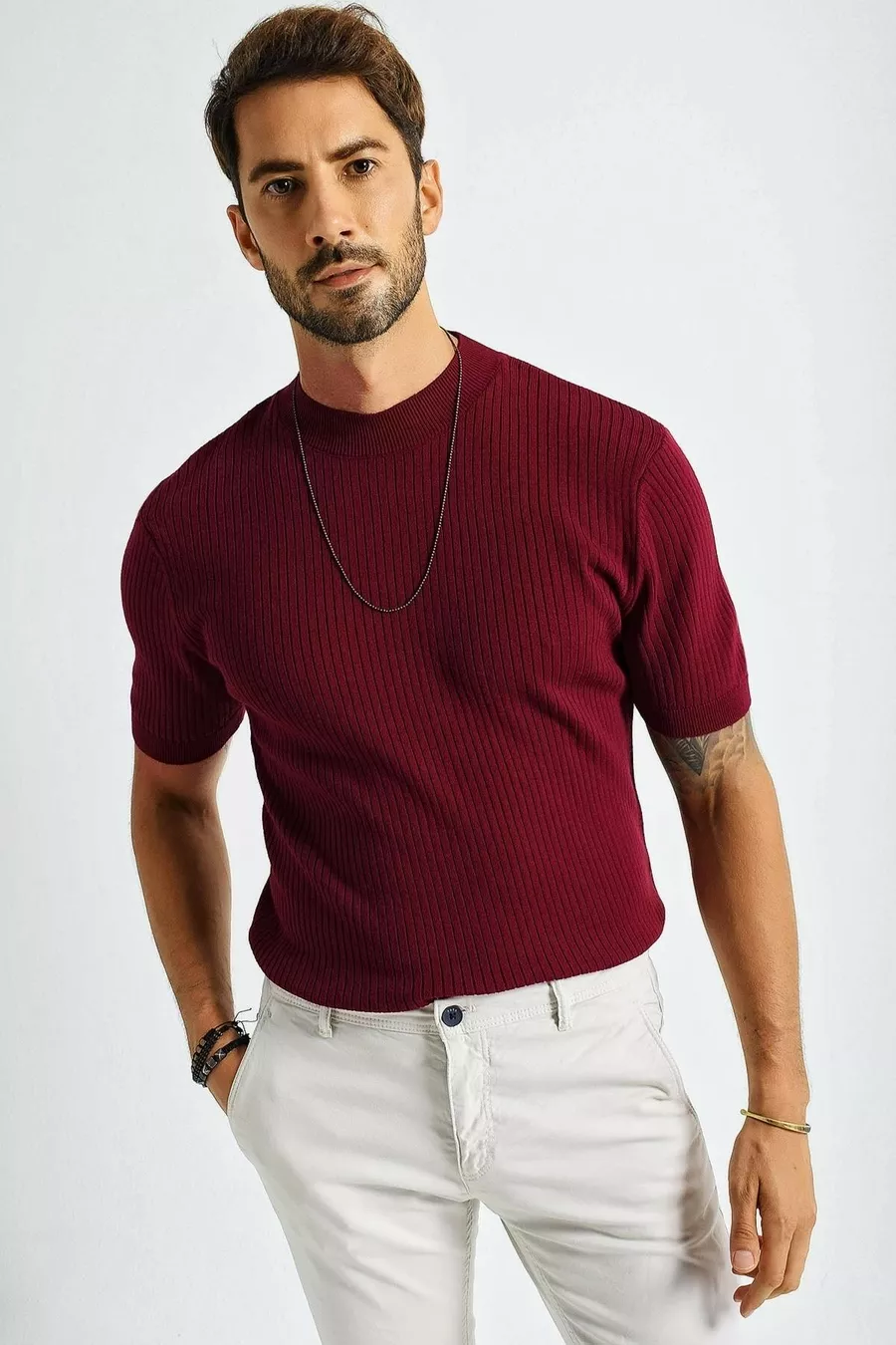 Muster: Einfarbig Schnitt: Regular Kragenart: Rundhals Material: Stoff Stoffart: Strick Ärmellänge: Kurzarm Farbe: Bordeaux Packungsinhalt: Einzelstück Taschen: Ohne Taschen Ärmellänge: Kurz Länge: Mini Anlass: Alltag Druck/Sticktechnik: Ohne Druck Nachhaltigkeitsdetail: Nein Silhouette: Regular Persona: Modisch Materialzusammensetzung: 100% Acryl Pflegehinweise: Typ 1 Saison: Sommer Herkunftsland: TR Verpackungszustand: In der Box