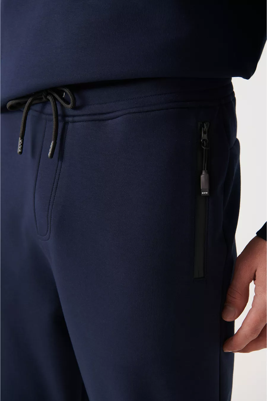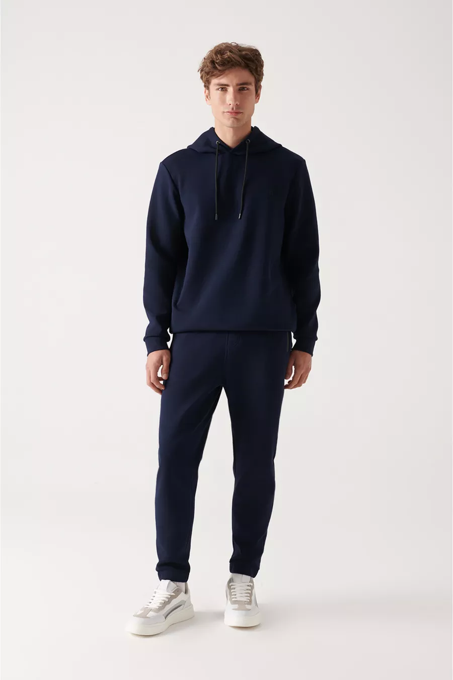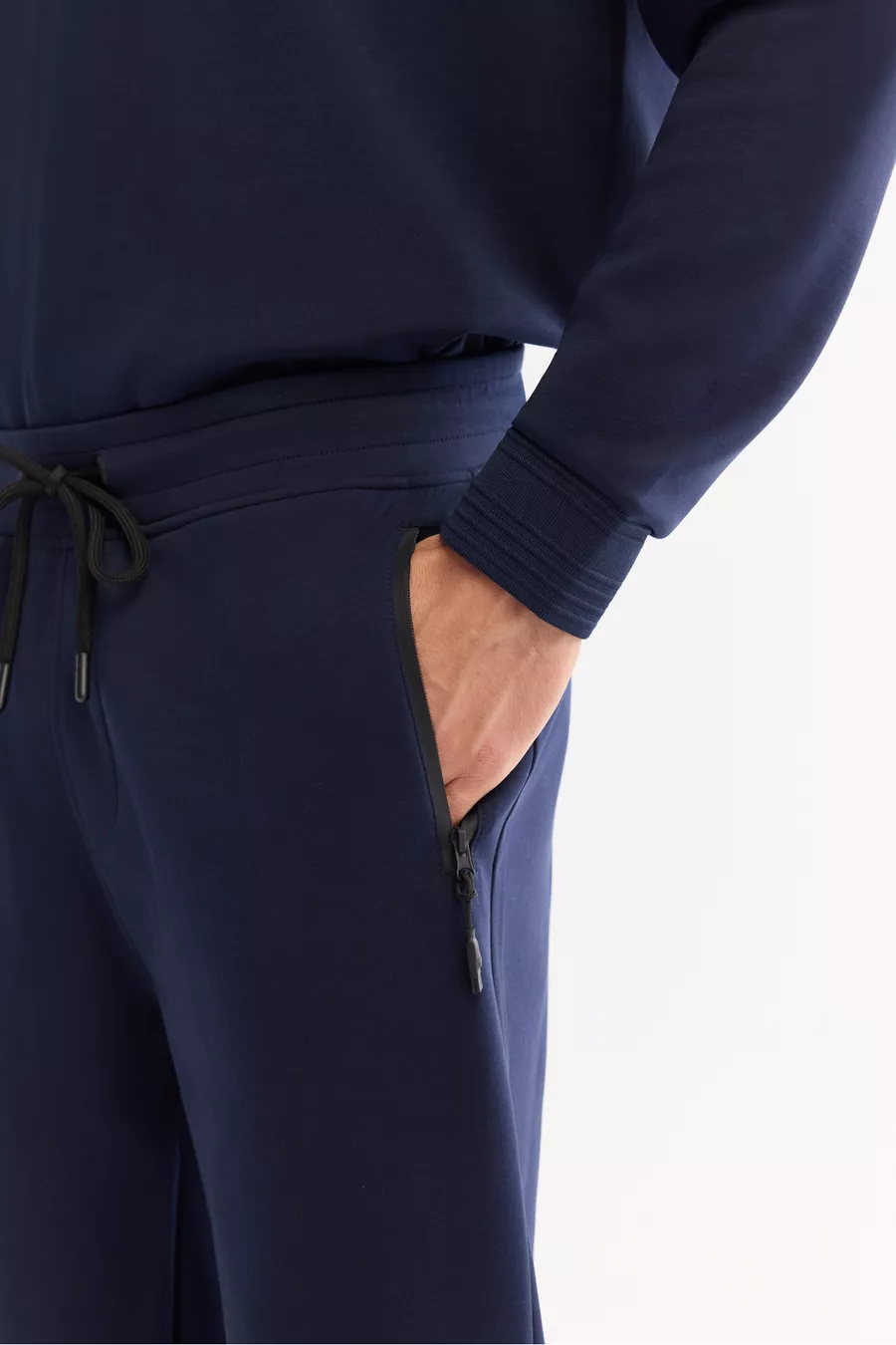 Herren Sweatpants in Marineblau mit elastischem Bund und Kordelzug, Bi-Stretch, Regular Fit, Modell