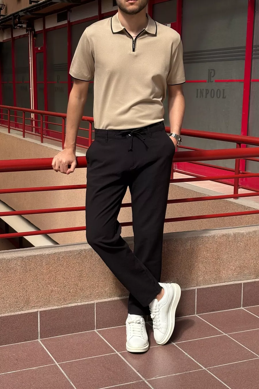 Material: Gewebt Stoffart: Gewebt Beinart: Regular Bund: Normaler Bund Muster: Gemustert Farbe: Schwarz Taschen: 4 Taschen Produktdetails: Mit Gummizug Kollektion: Design Dicke: Dünn Futter: Ohne Futter Länge: Regular Silhouette: Regular Anlass: Alltag Schnitt: Regular Zusätzliche Eigenschaften: Verstellbarer Bund Webart: Leinenoptik Persona: Modebewusst Druck-/Sticktechnik: Ohne Druck Gürtel-/Taillenband: Mit Kordel Nachhaltigkeitsdetails: Ja Materialzusammensetzung: 85% Baumwolle, 15% Polyester Pflegehinweise: Vorhanden Saison: Sommer Herkunftsland: TR Boxzustand: Keine Box Verschlussart: Halber Reißverschluss Packungsinhalt: Einzelstück