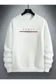 Herren Weißes Paris Bedrucktes Rundhals-Sweatshirt