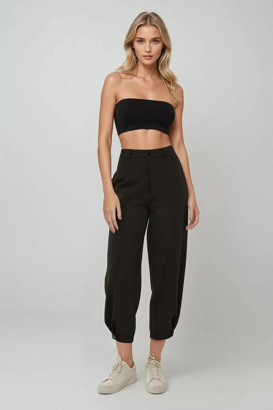 Hohe Taille Haremshose mit Knopfdetails