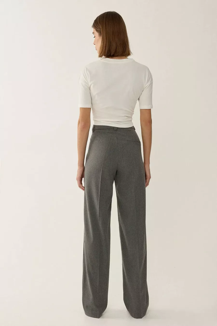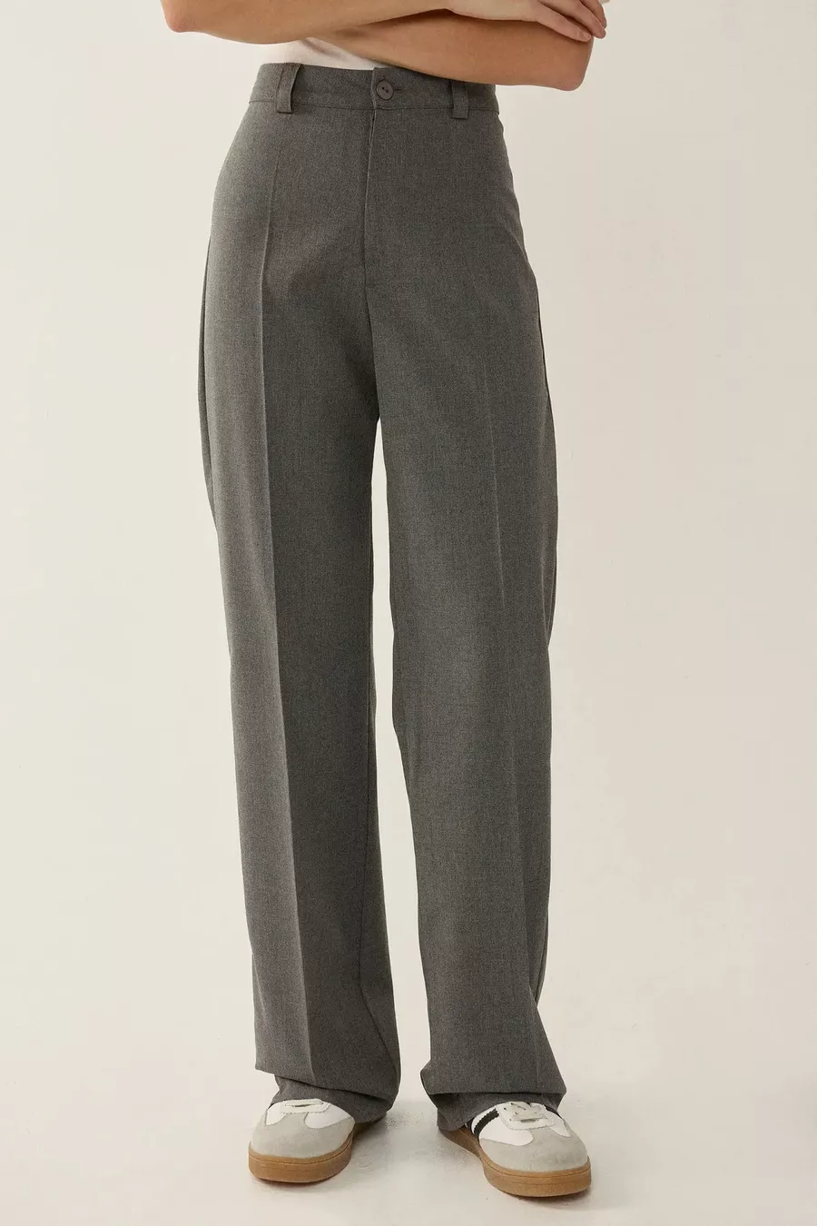 Material: Elasthan Stoffart: Gewebt Hosenbein-Typ: Gerade geschnitten Bund: Hoher Bund Muster: Uni Farbe: Grau Taschen: Ohne Taschen Produktdetails: Reißverschluss Kollektion: Non-Denim Dicke: Mittel Futter: Ohne Futter Länge: Lang Silhouette: Gerade geschnitten Anlass: Casual/Alltag Passform: Gerade Zusätzliche Eigenschaften: Keine zusätzlichen Eigenschaften Webart: Viskose Supreme Persona: Smart Druck/Sticktechnik: Ohne Druck Gürtel/Bindegürtel: Ohne Gürtel Nachhaltigkeitsdetails: Nein Materialzusammensetzung: 62% Viskose, 35% Polyester, 3% Elasthan Pflegehinweise: Kein Bleichmittel verwenden, Schonwaschgang 30°C, Dampf bügeln, liegend trocknen, mit mildem Waschmittel waschen Saison: Alle Jahreszeiten Herkunft: TR Verpackungszustand: Keine Box