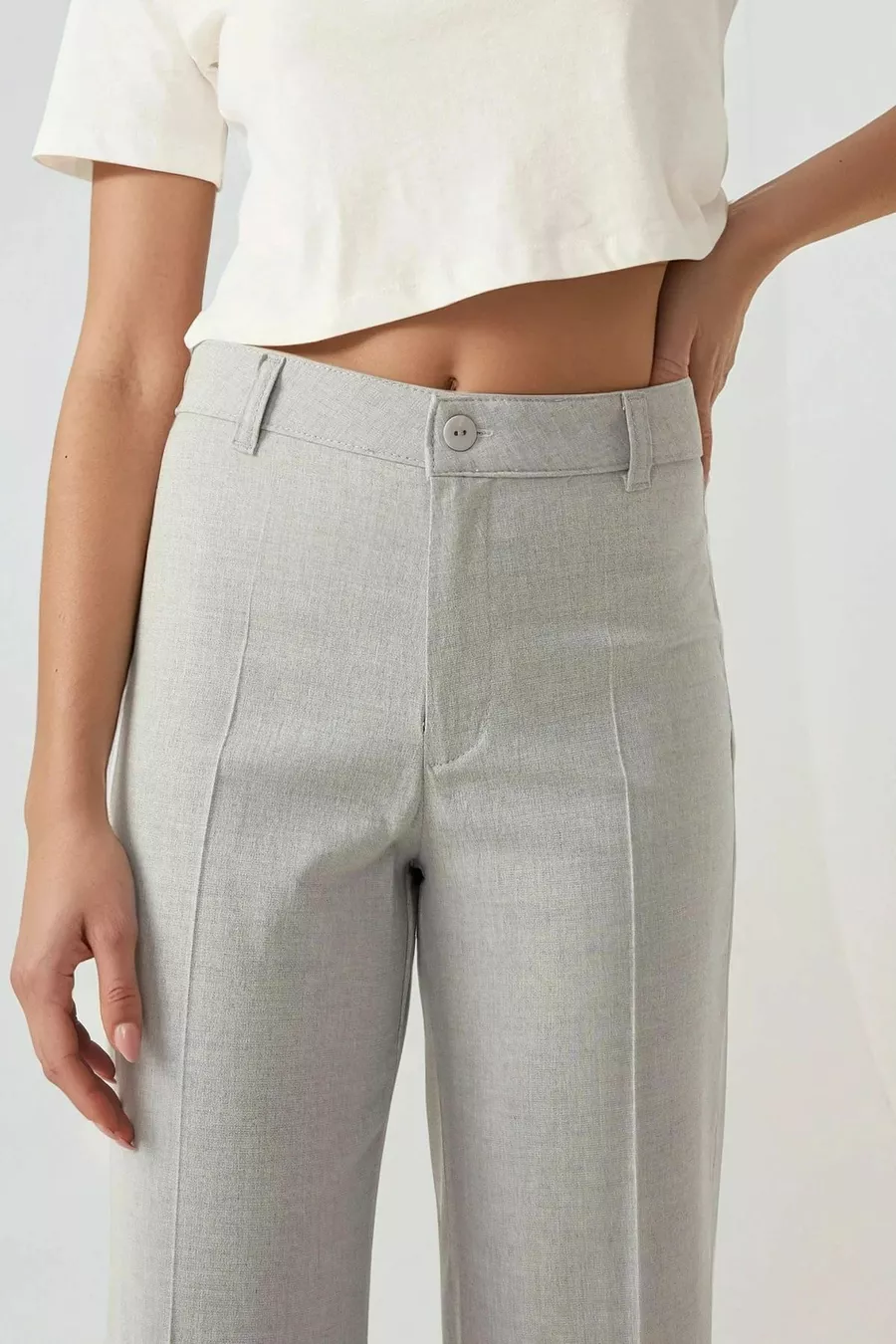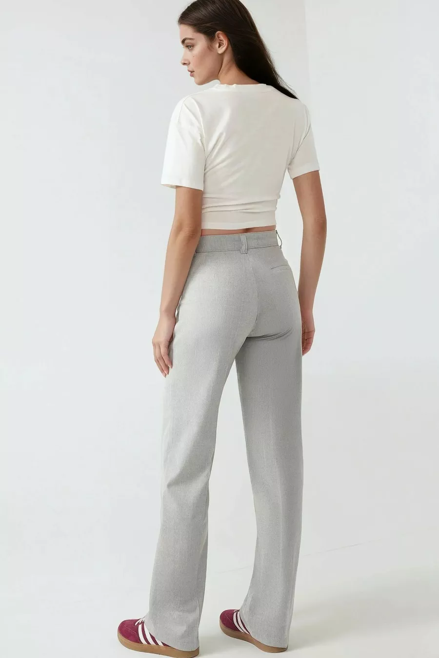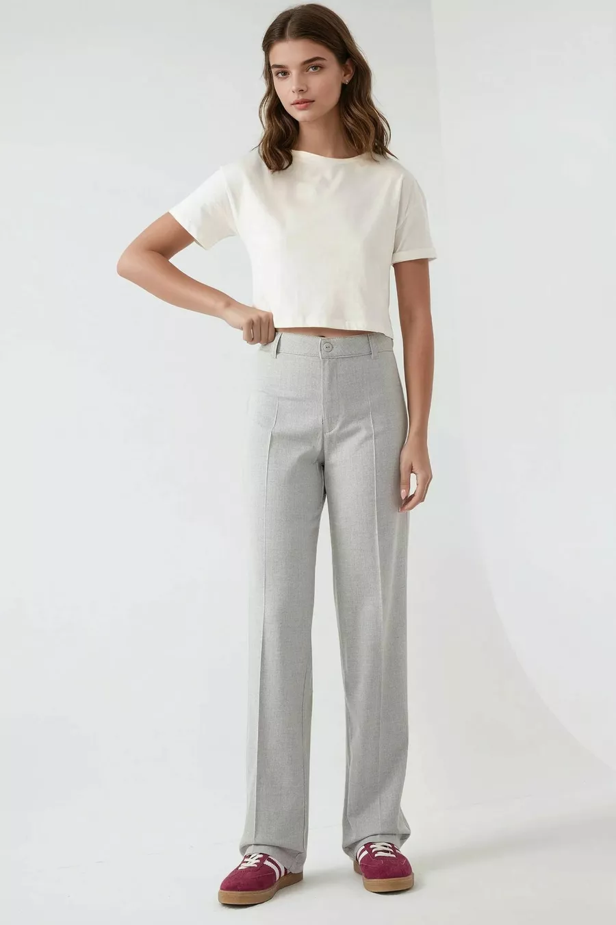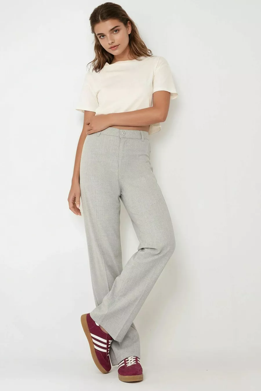 Material: Elasthan Stoffart: Gewebt Hosenbein-Typ: Gerade geschnitten Bund: Hoher Bund Muster: Uni Farbe: Grau Taschen: Ohne Taschen Produktdetails: Reißverschluss Kollektion: Non-Denim Dicke: Mittel Futter: Ohne Futter Länge: Lang Silhouette: Gerade geschnitten Anlass: Casual/Alltag Passform: Gerade Zusätzliche Eigenschaften: Keine zusätzlichen Eigenschaften Webart: Viskose Supreme Persona: Smart Druck/Sticktechnik: Ohne Druck Gürtel/Bindegürtel: Ohne Gürtel Nachhaltigkeitsdetails: Nein Materialzusammensetzung: 62% Viskose, 35% Polyester, 3% Elasthan Pflegehinweise: Kein Bleichmittel verwenden, Schonwaschgang 30°C, Dampf bügeln, liegend trocknen, mit mildem Waschmittel waschen Saison: Alle Jahreszeiten Herkunft: TR Verpackungszustand: Keine Verpackung