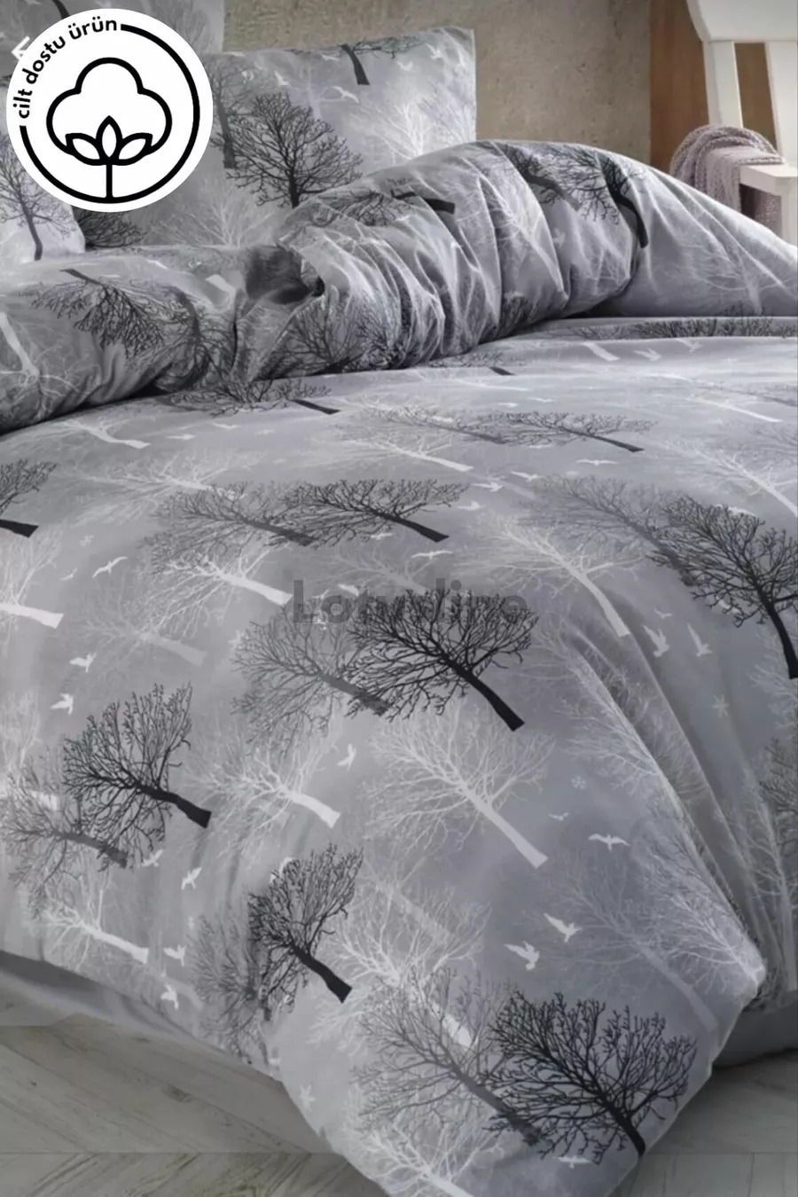 Home Grau Doppelbett Luxuriöse Baumwoll-Bettwäsche mit Baum-Muster - Set