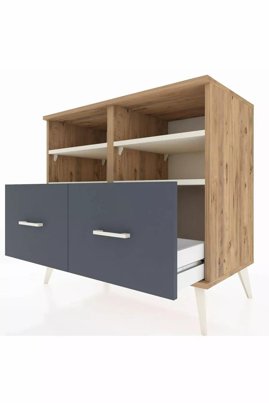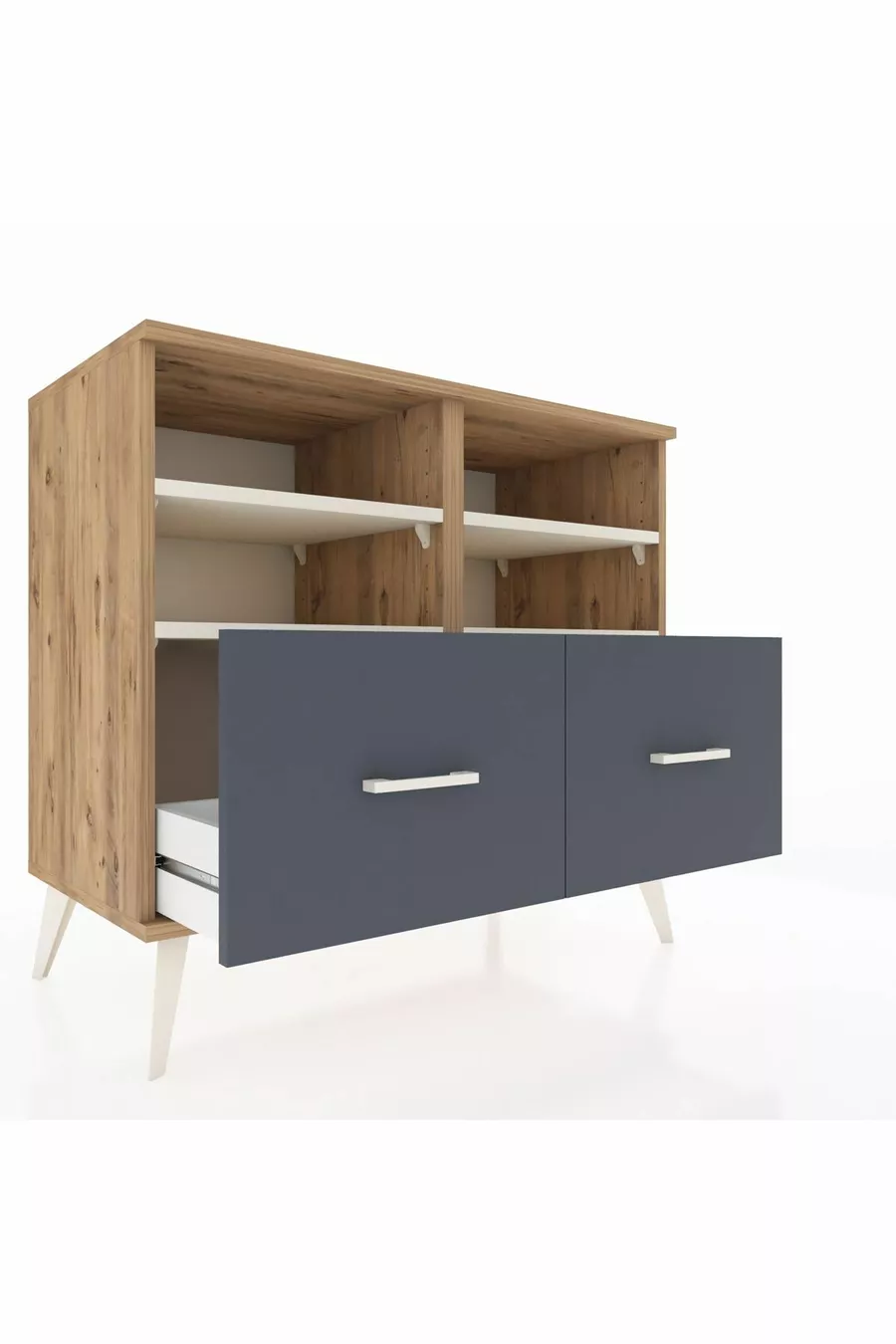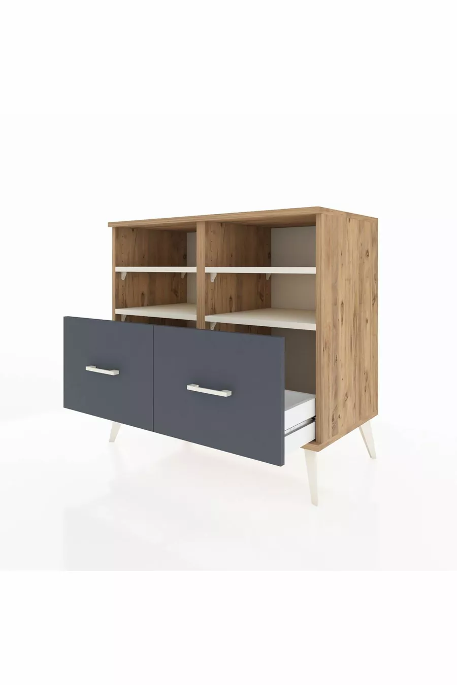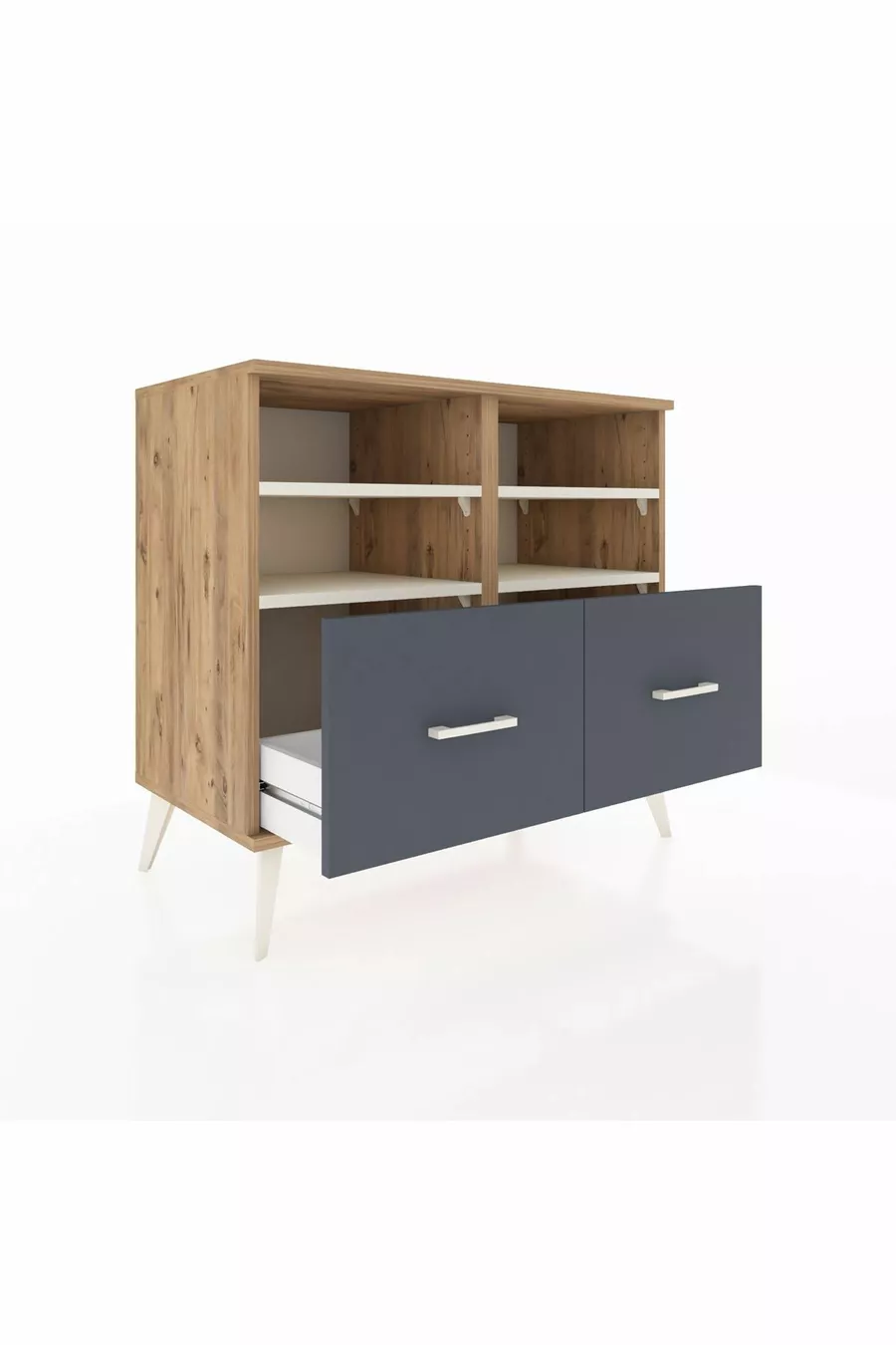 Hyperion Kommode mit 4 Regalen und 2 Schubladen Kiefer-Marmor/Anthrazit
