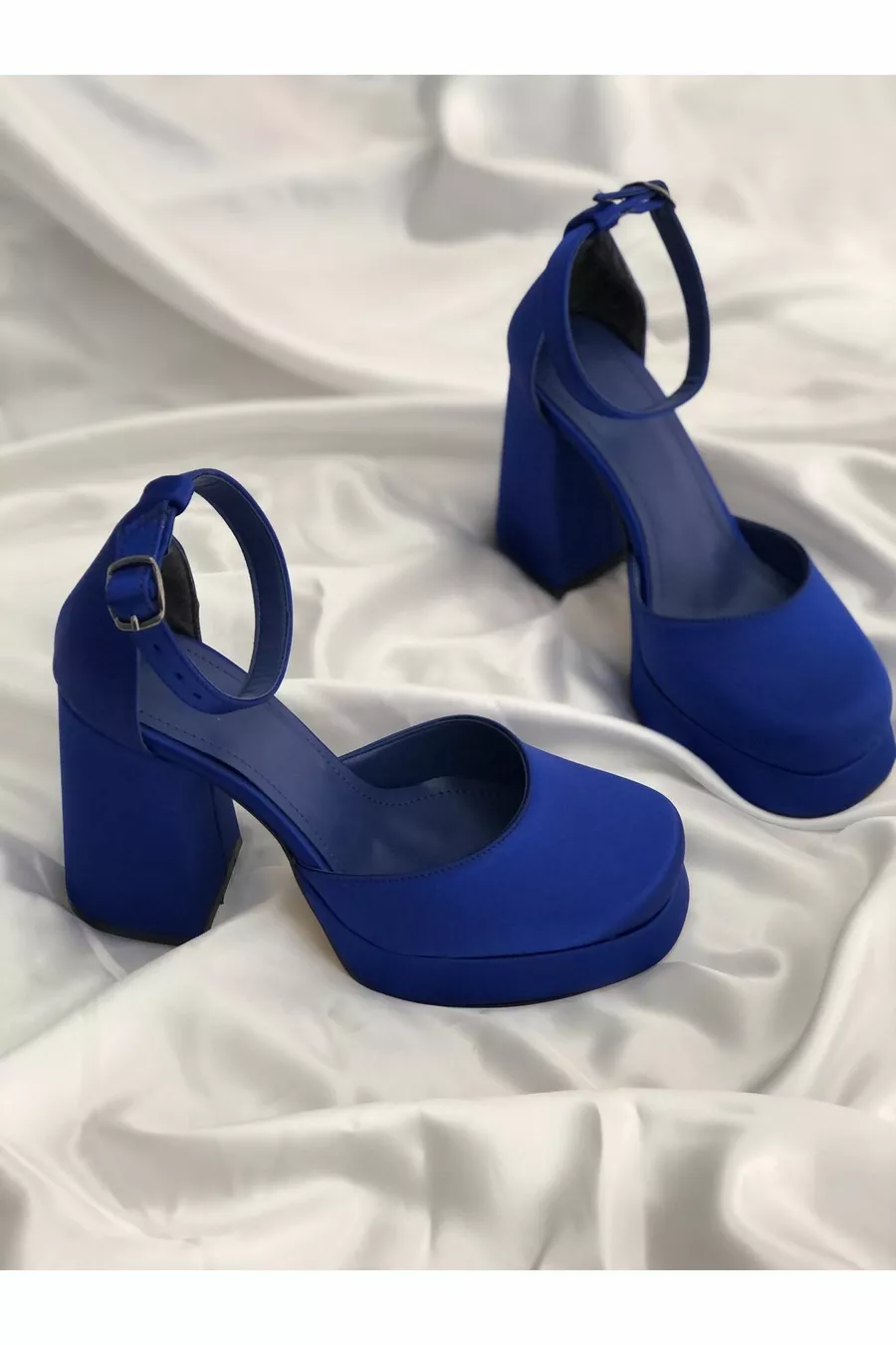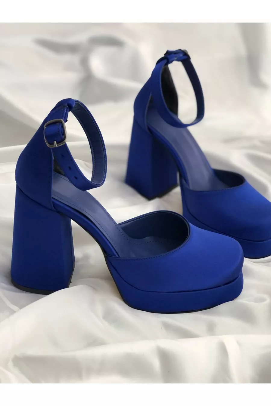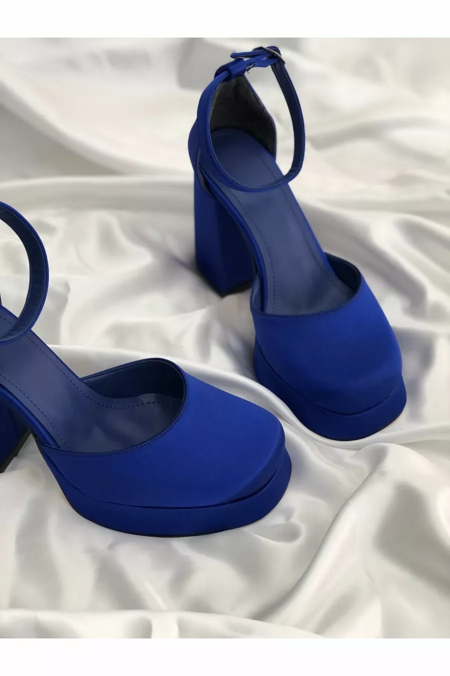 JENNA SAKS BLAUER PLATEAU-STIL AUS SATIN MIT KLOBIGEN ABSÄTZEN