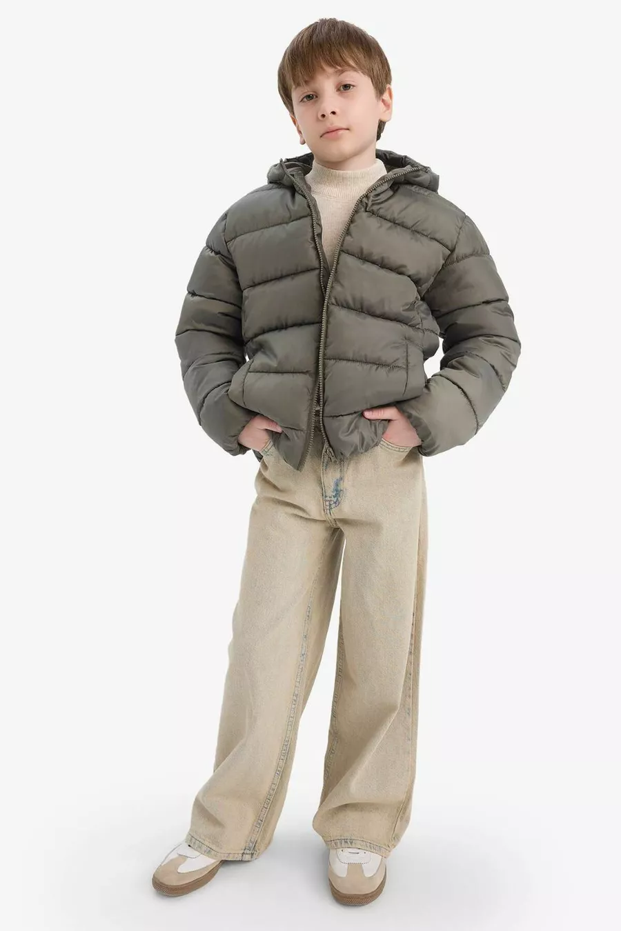 Passform: Regular Kragenart: Kapuze Material: Polyester Stoffart: Gewebt Farbe: Khaki Verschlussart: Reißverschluss Muster: Uni Produkttyp: Uni Taschen: Ohne Taschen Ärmellänge: Lang Ärmelform: Lange Ärmel Futter: Gefüttert Länge: Standard Anlass: Casual/Alltag Silhouette: Gepolstert Technik: Wasserabweisend Kollektion: Basic Besondere Merkmale: Wasserabweisend Fülltechnik: Gefüllt Nachhaltigkeitsdetails: Nein Gürtel/Bindegurt: Ohne Gürtel Druck-/Sticktechnik: Ohne Druck Materialzusammensetzung: 100% Polyester Waschanleitung: Typ 2 Herkunft: MM
