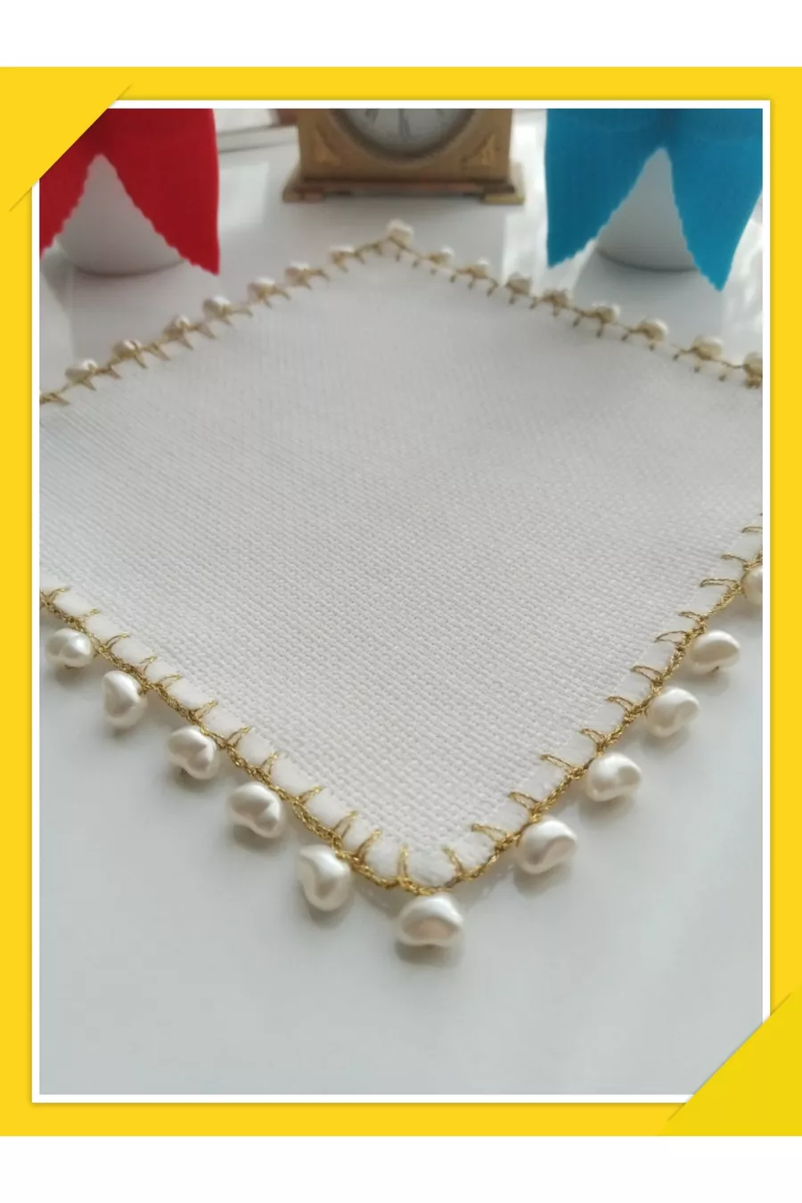 Kahve yanı kalp incili sunum pecete 3 adet