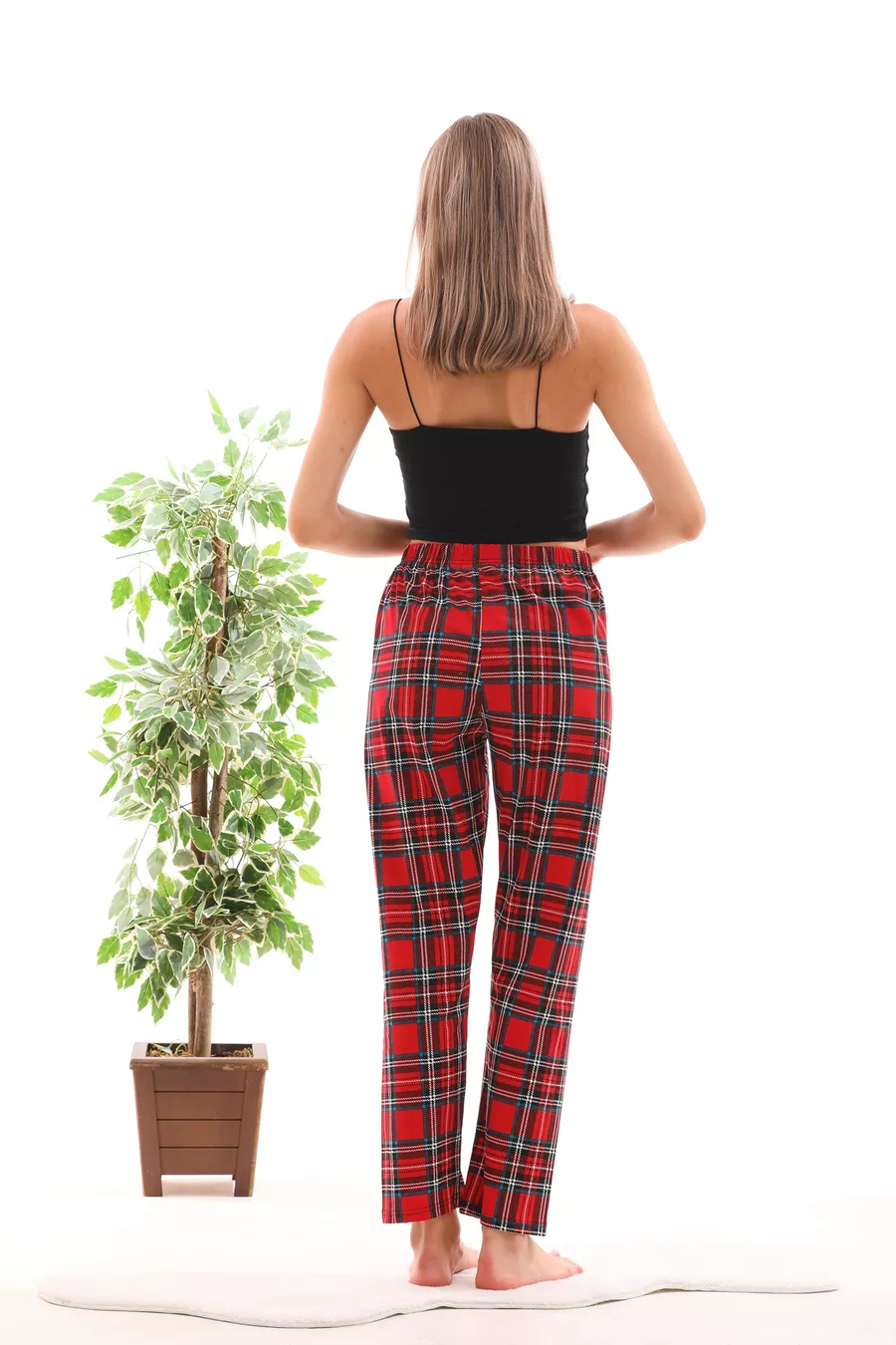 Kariertes Bedrucktes Entspanntes Unisex-Pyjama-Hose Rot-Blau