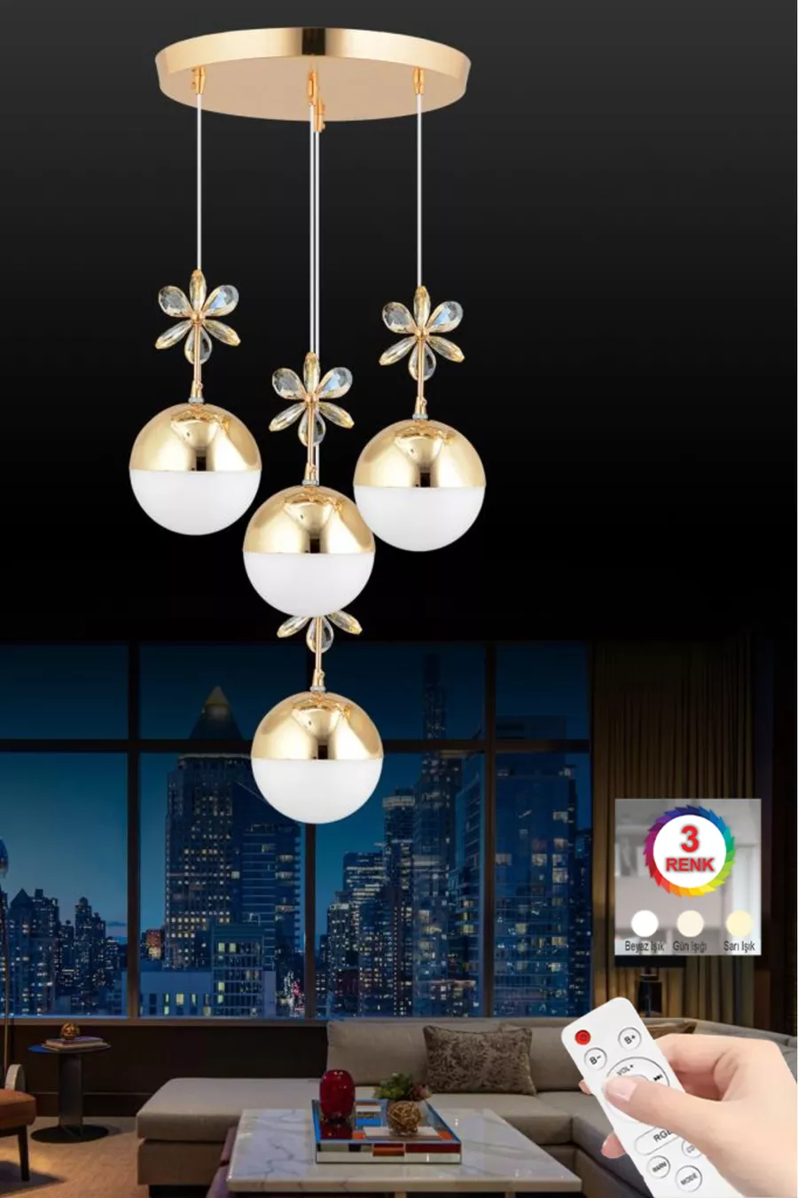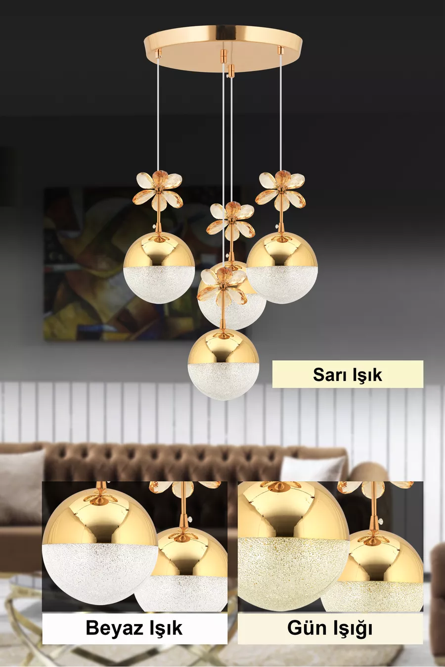 Kelebek 4-fach Gold 3-farbiger stufenloser LED-Hängeleuchte