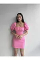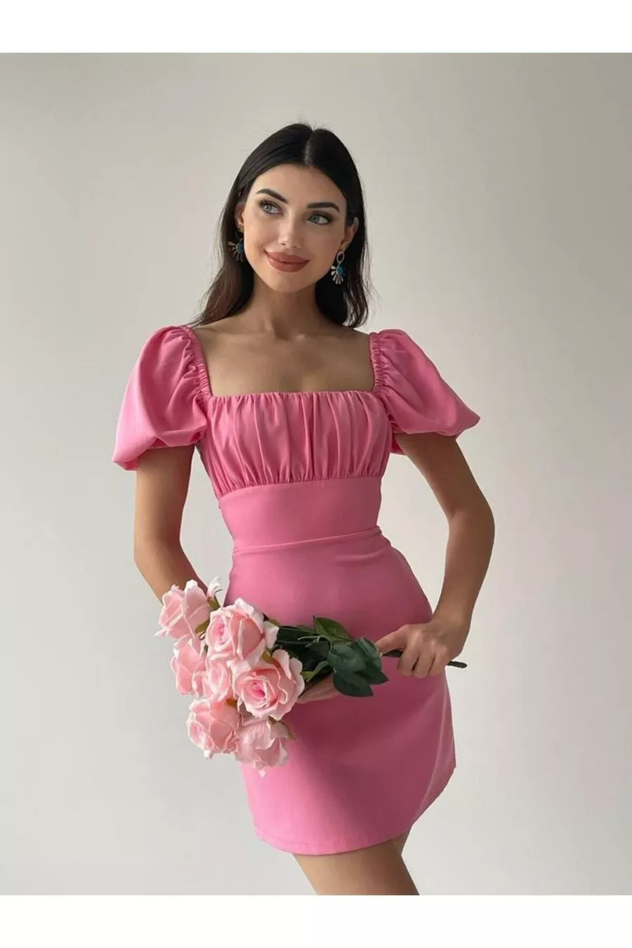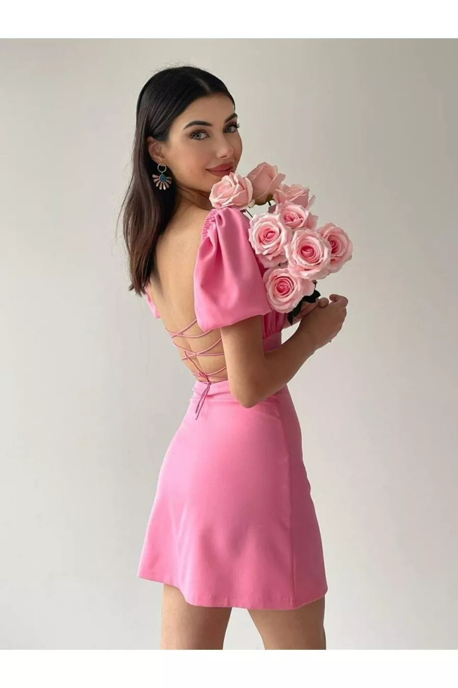 Kleid mit rosa Wassermelonenärmeln und Rückenausschnitt