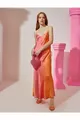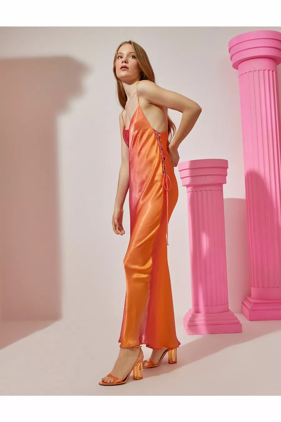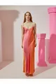 Langes Kleid aus Satin mit Krawatte und Krawatte