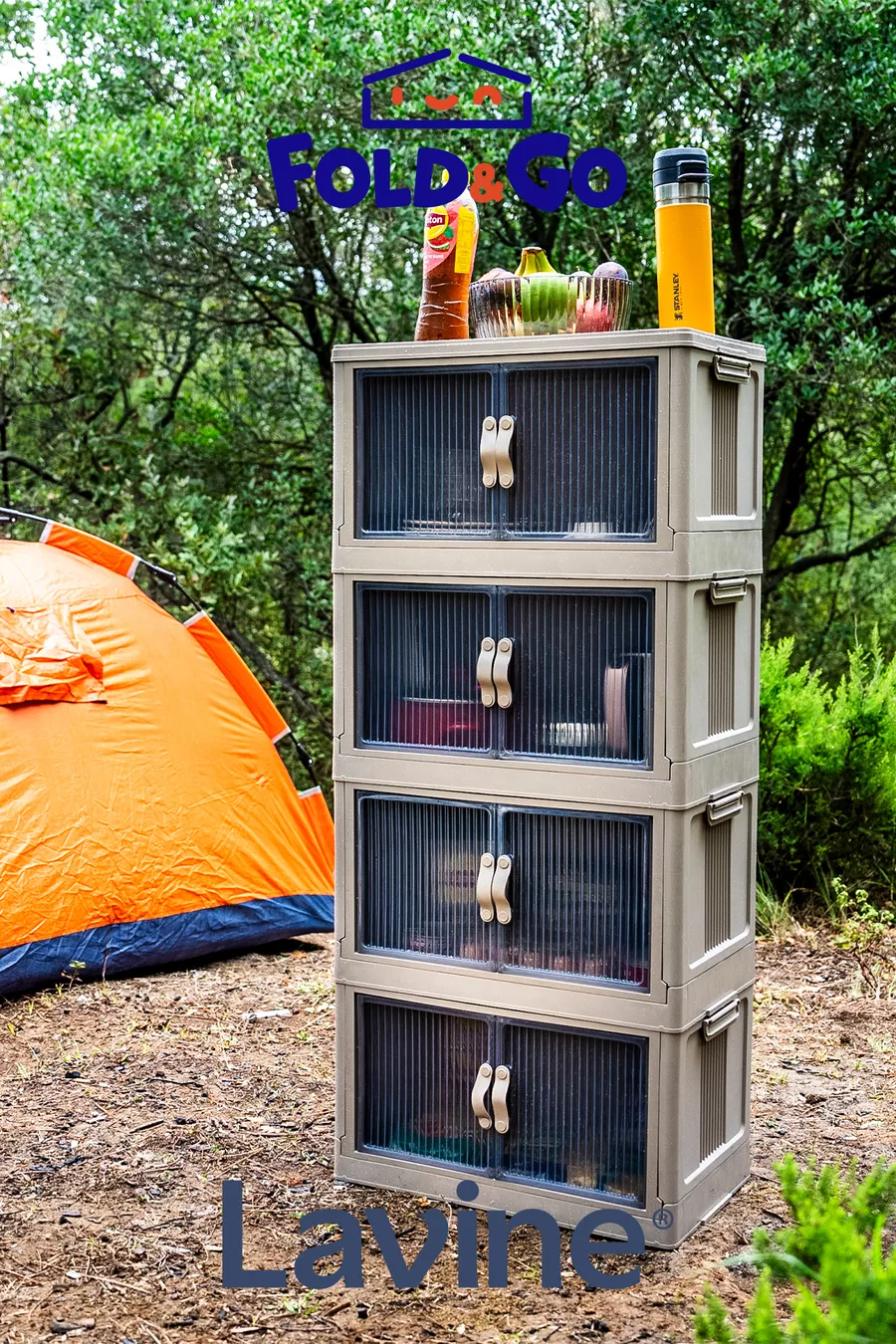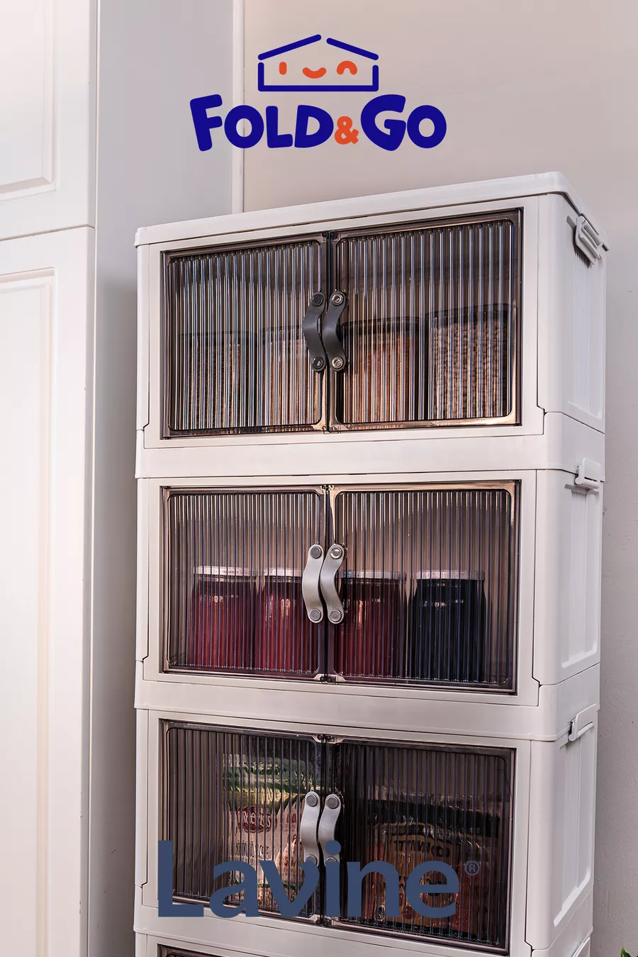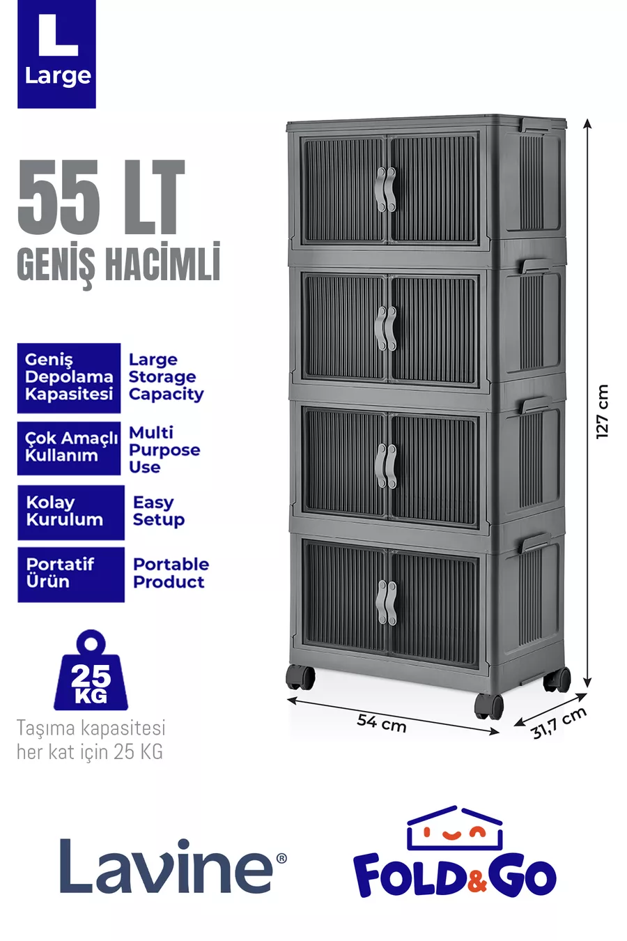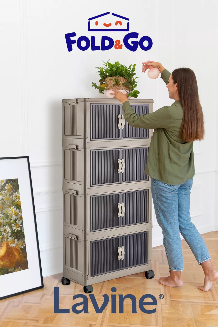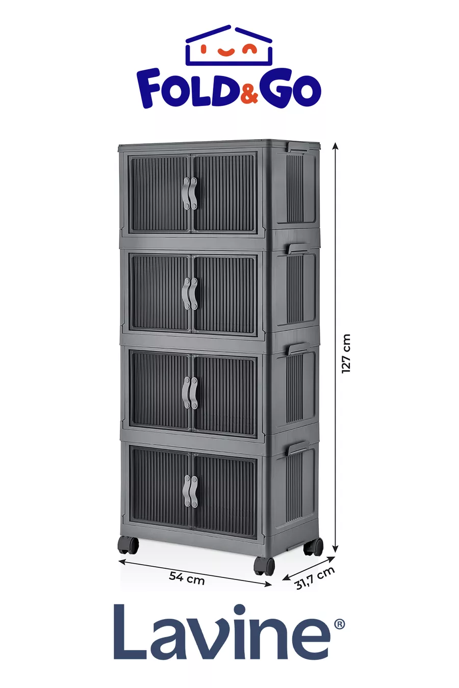 Lavine Fold&go 4er Set tragbarer Organizer mit Rollen, Mehrzweckschrank, klappbar mit Deckel „Anthrazit“