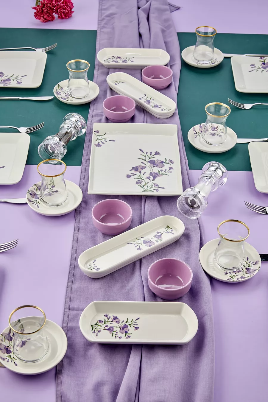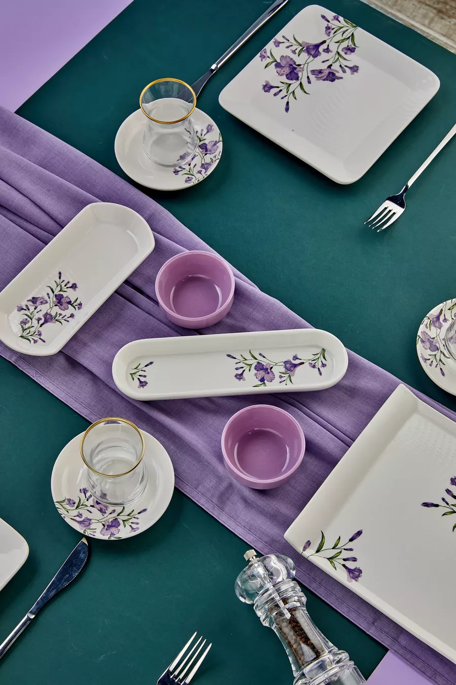 Lila Efeu 6-teiliges quadratisches Frühstücksset für 6 Personen