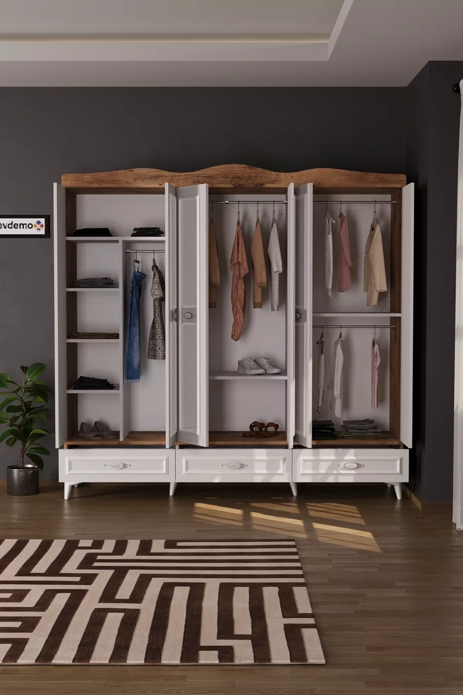 Funktion: Glastür Farbe: Braun Breite: 206 cm Tiefe: 52 cm Anzahl der Türen: 6 Körpermaterial: Spanplatte Spiegelfunktion: Mit Spiegel Garantiezeit: 2 Jahre Stil: Modern Thema/ Stil: Modern Herkunft: TR Eigenschaft: Mit Schubladen