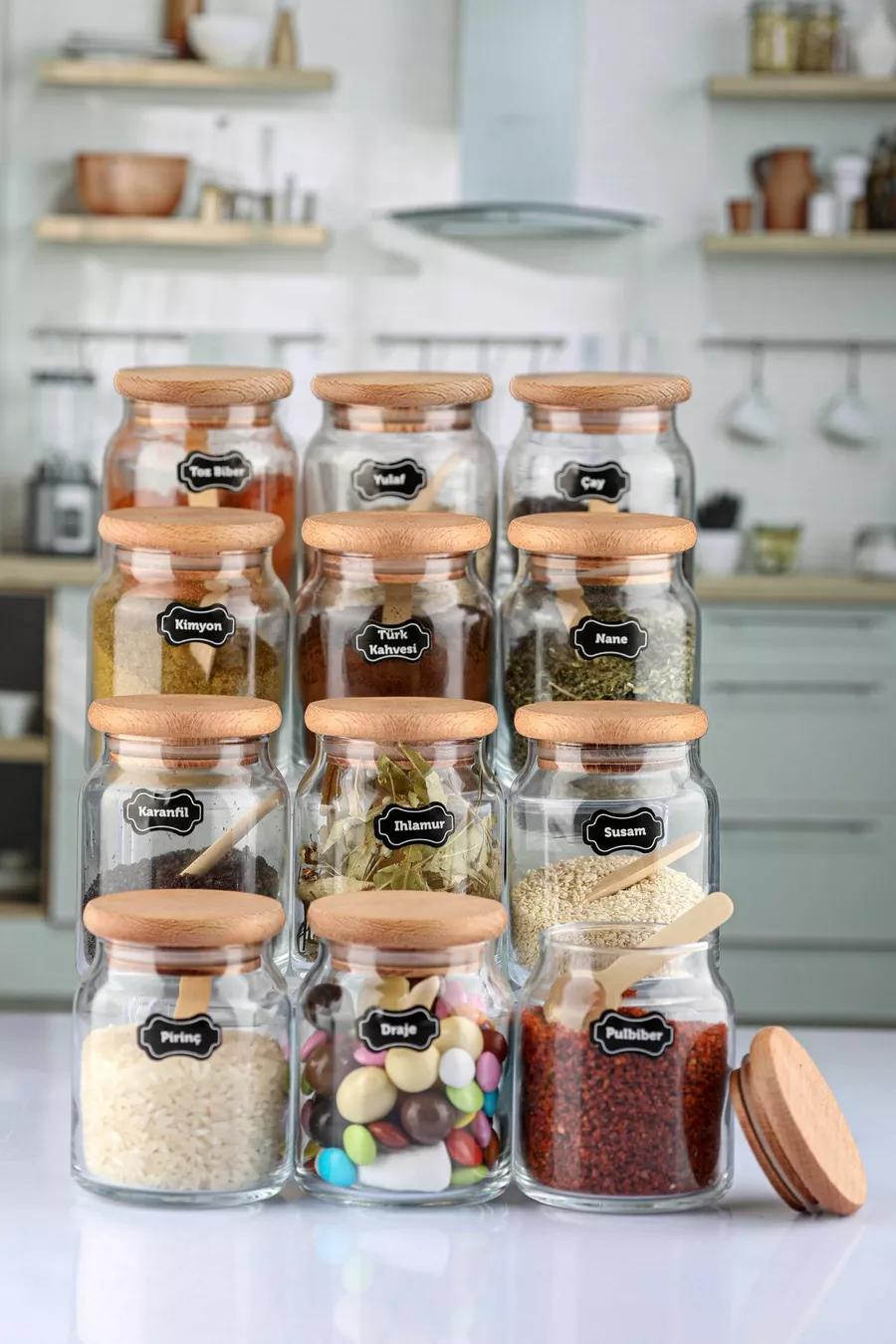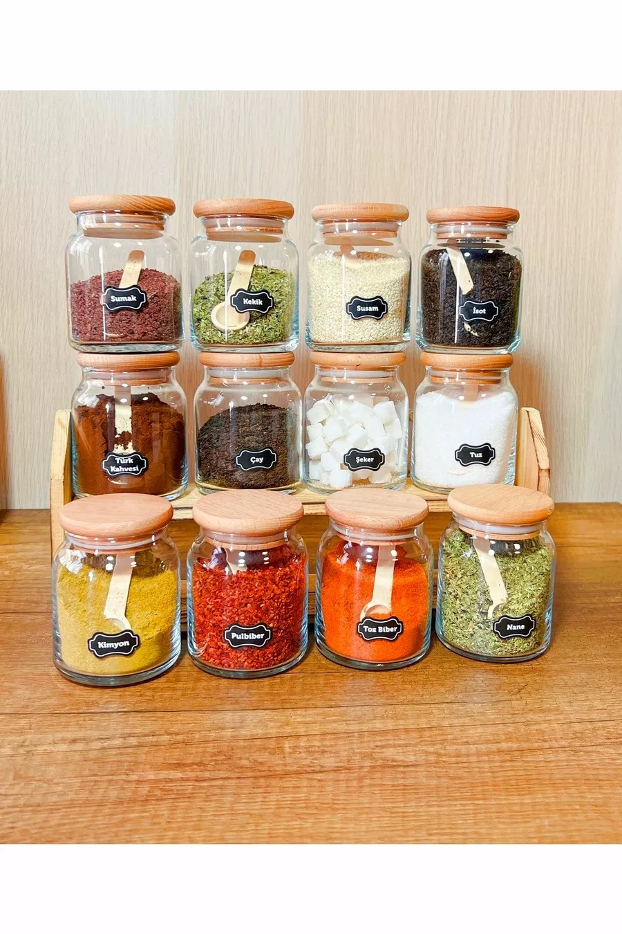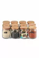 Luxuriöses Gewürzset mit Etikett, Bambusdeckel und Löffel, ml
