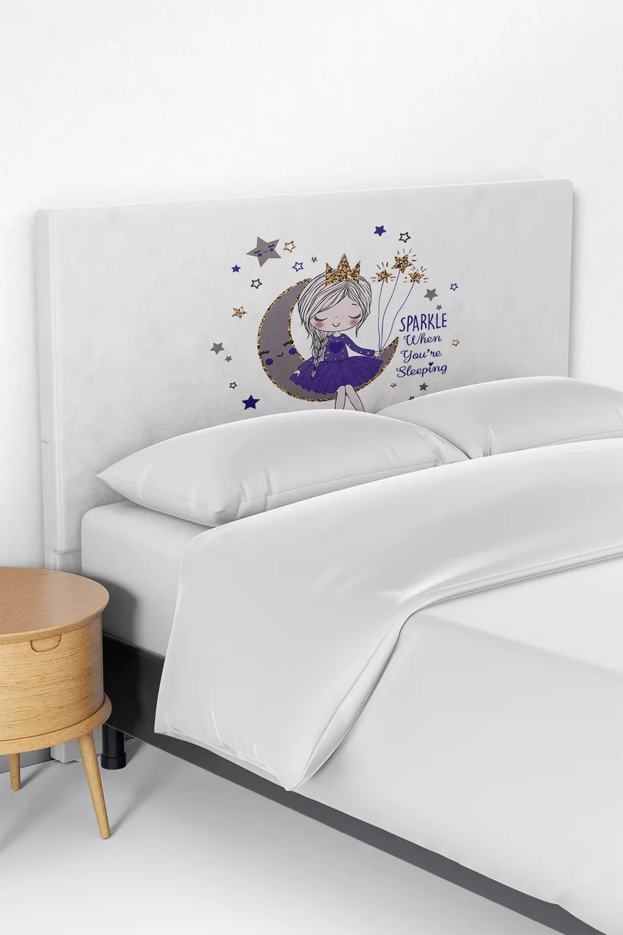 Mädchen auf dem Mond Kinderbett Kopfteilbezug in Lila Muster