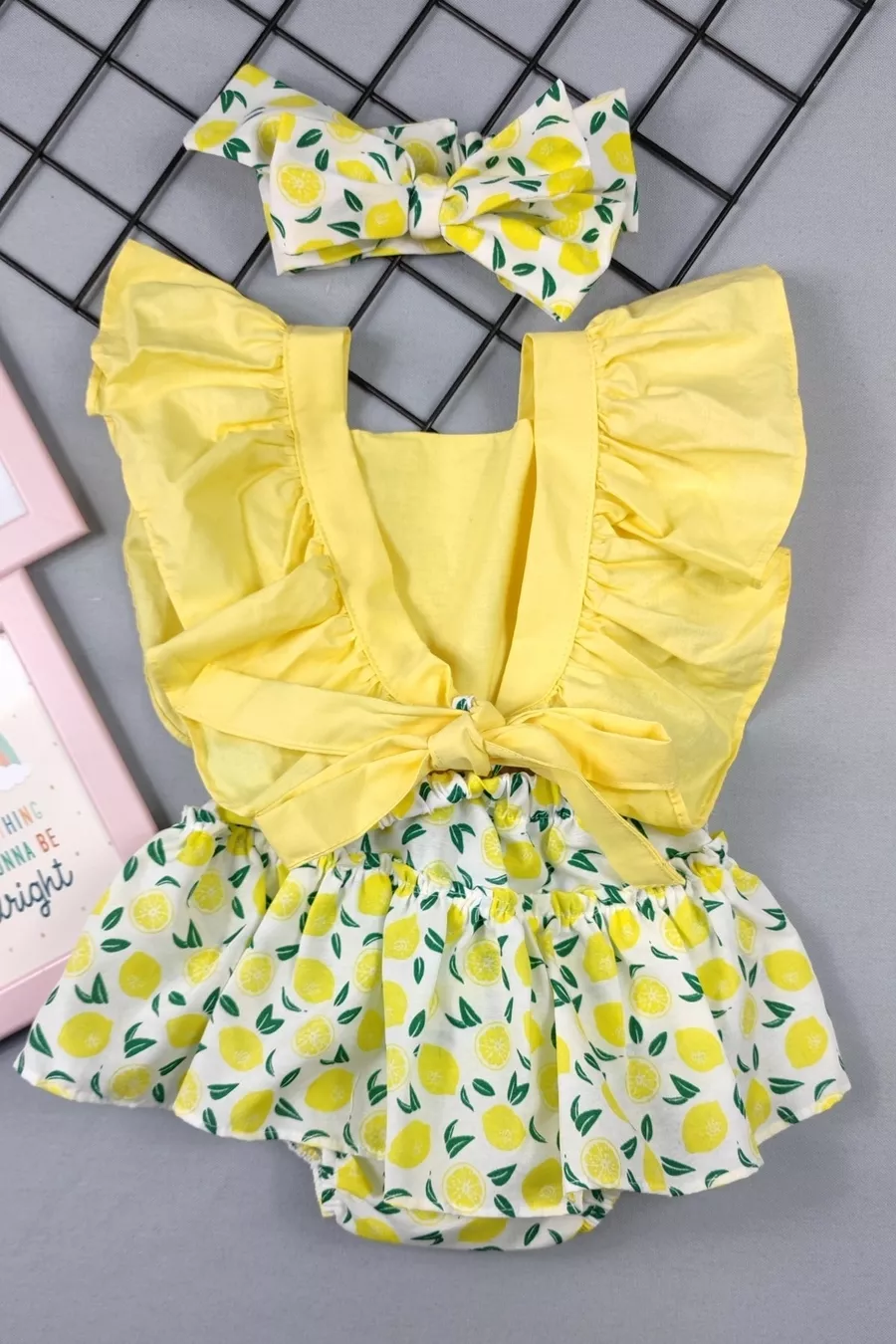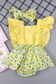 Mädchen-Baby-Strampler-Set mit Rüschen, Zitrusmuster und Bandana