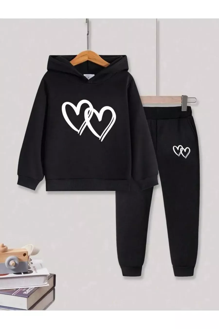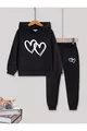 Mädchen Jogginganzug mit schwarzen ineinander verschlungenen Herzmotiven