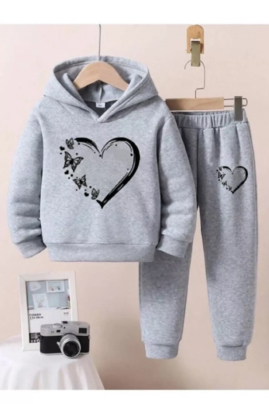 Mädchen Jogginganzug mit schwarzem Schmetterling- und Herzmuster