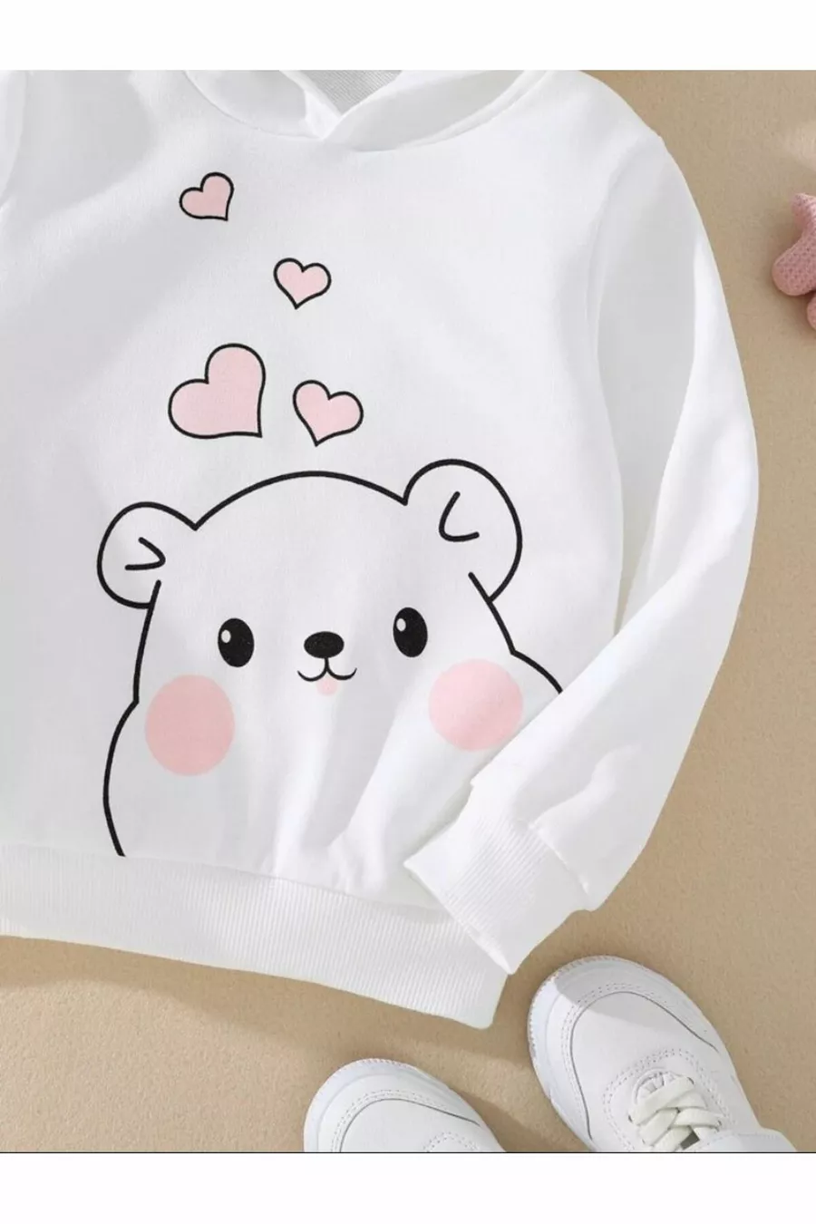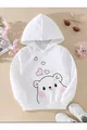Mädchen Kapuzenpullover Weiß mit Süßem Bärenmotiv