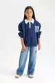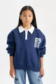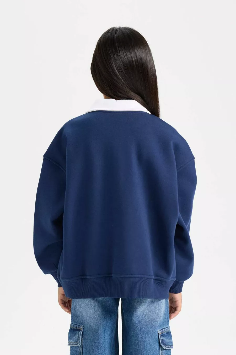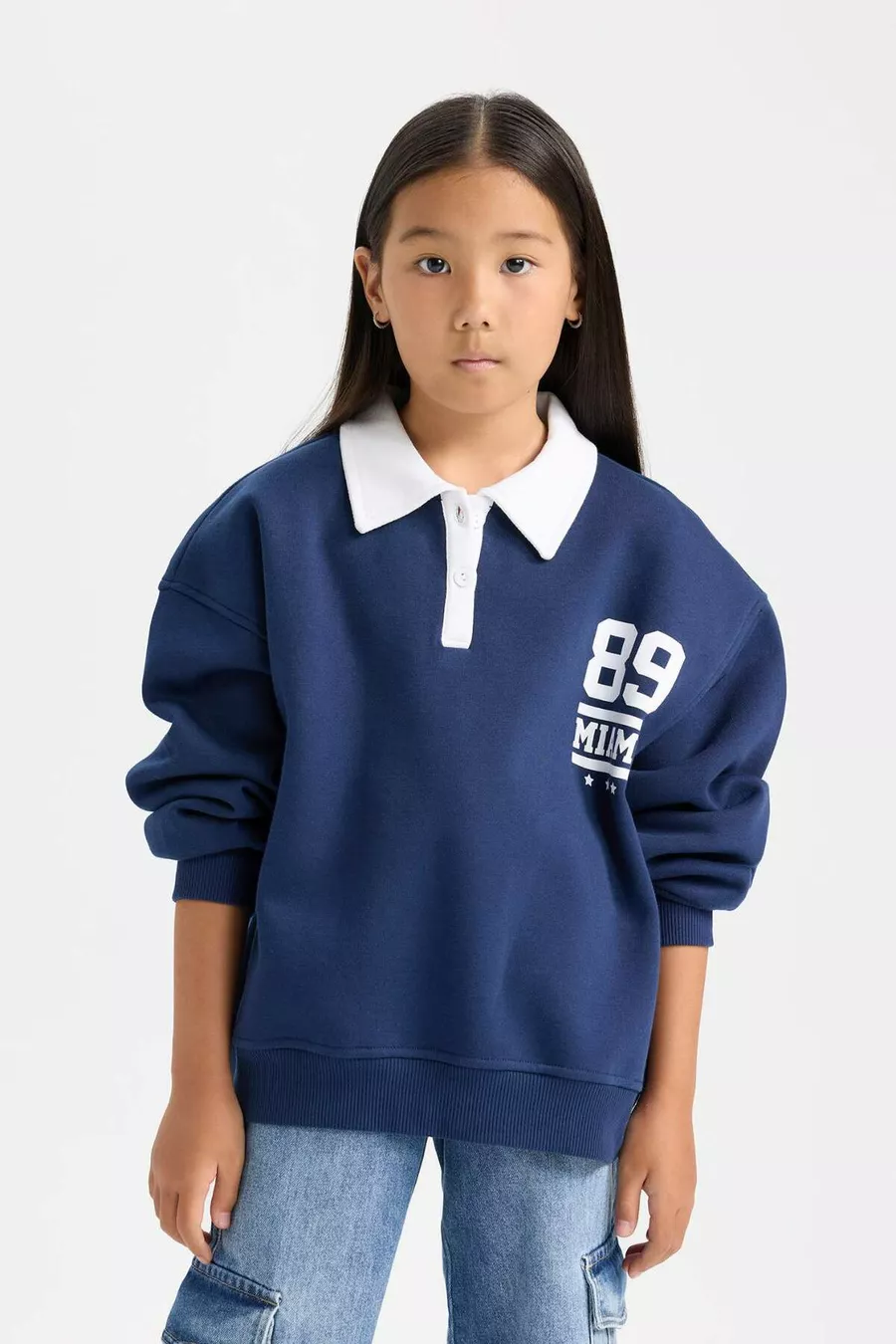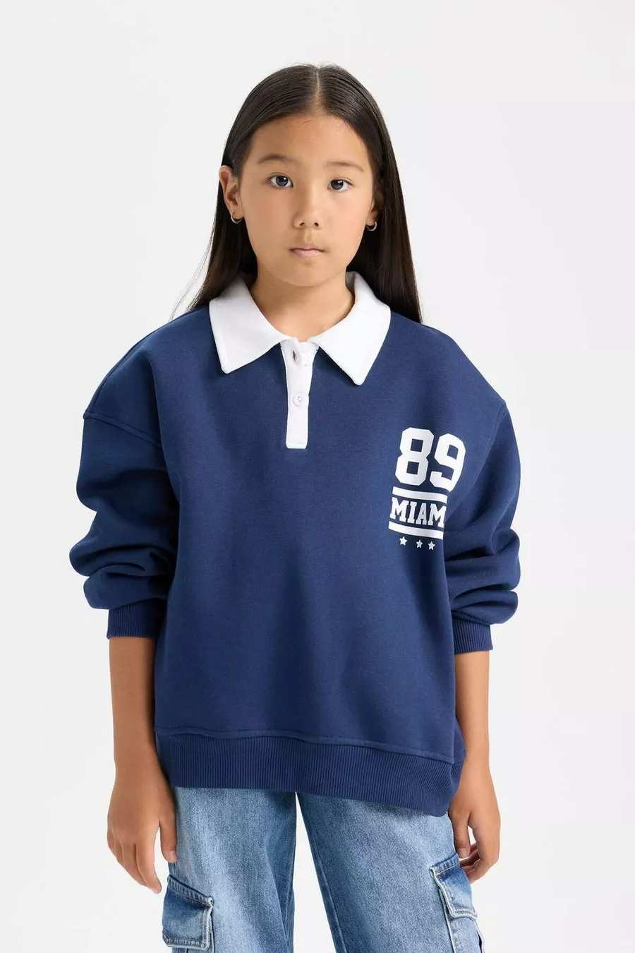 Mädchen Oversize Weite Passform Polo-Kragen Bedrucktes, Innen Weich Gefüttertes Sweatshirt WN