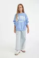 Mädchen Oversize Weit geschnittenes Sweatshirt mit Rundhalsausschnitt und Print WN