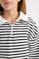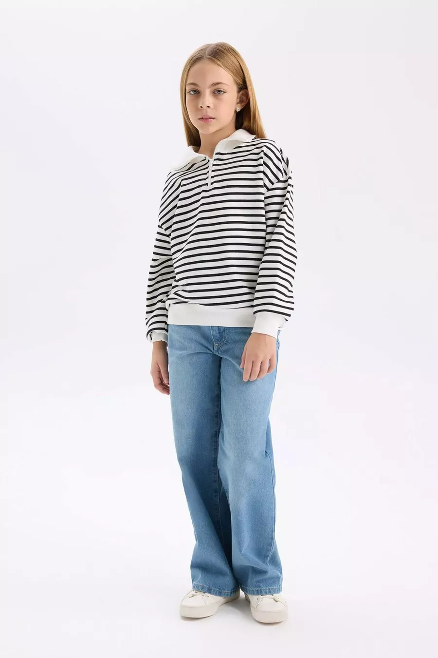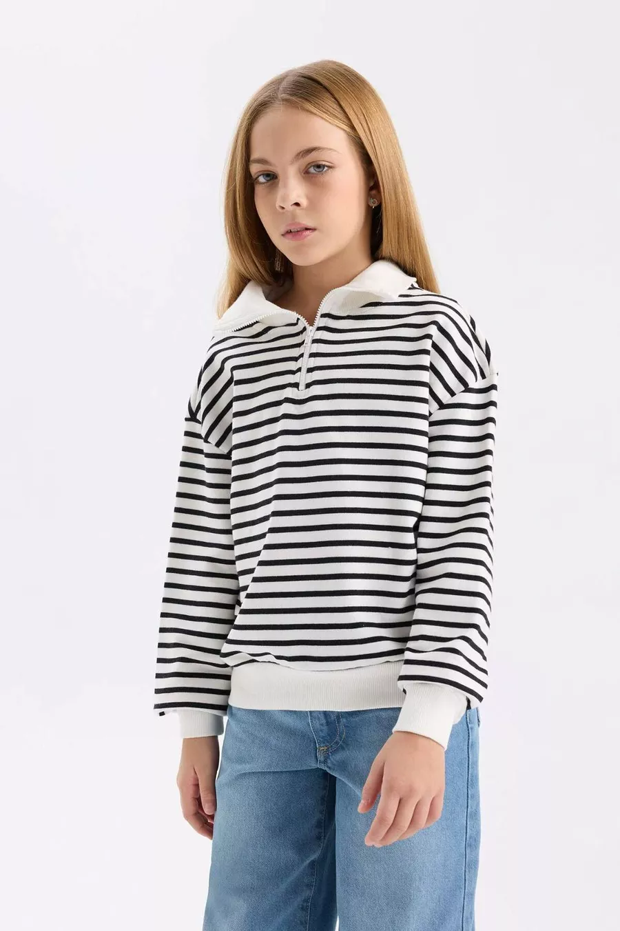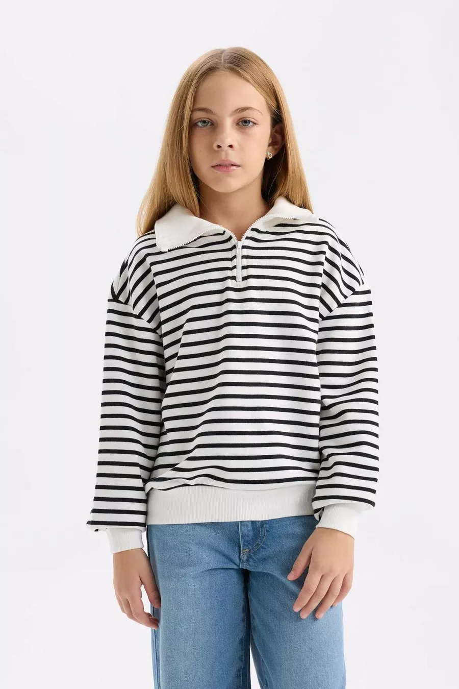 Mädchen Oversize Locker Geschnittenes Halb Reißverschluss Gestreiftes Sweatshirt WN