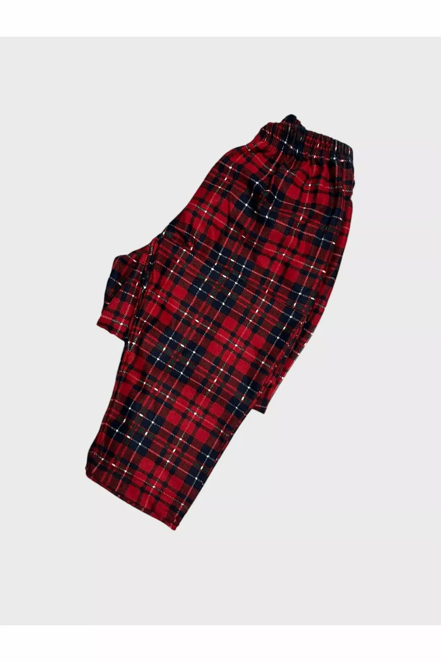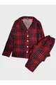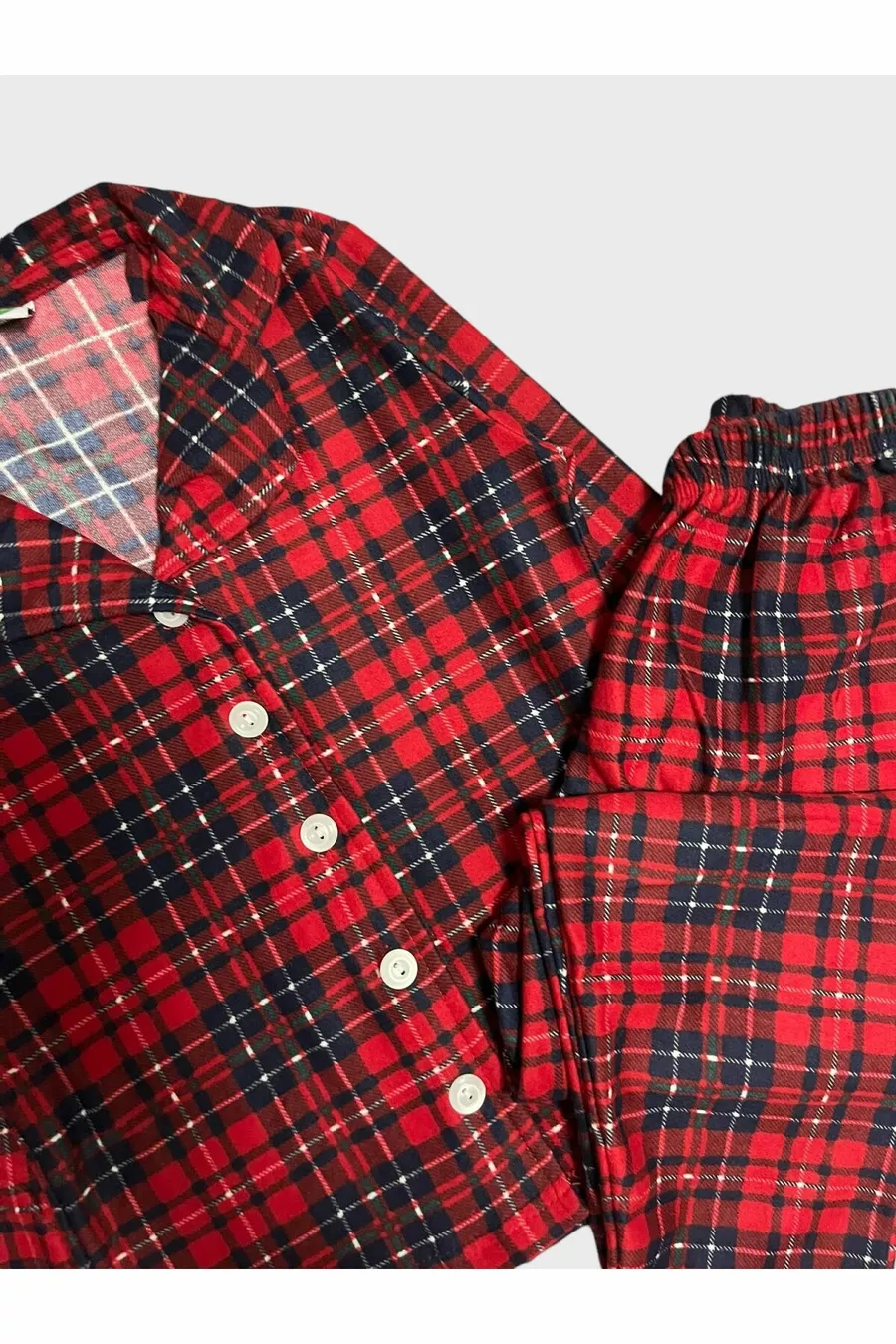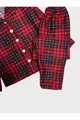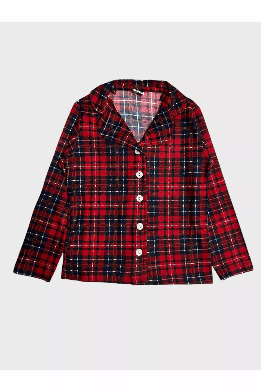 Mädchen-Schlafanzug-Set aus Baumwoll-Samtstoff mit rotem Karomuster, Hemdkragen und langen Ärmeln mit Knöpfen