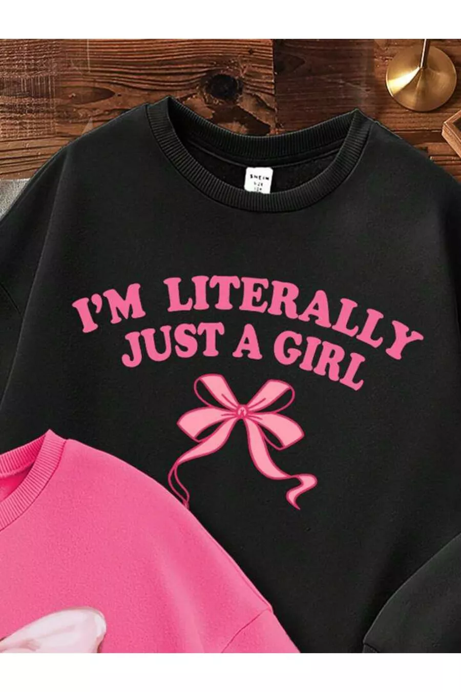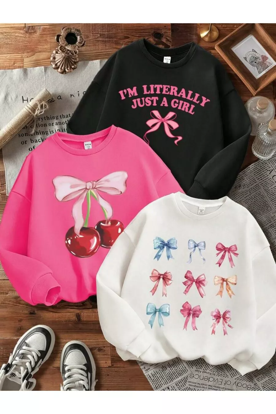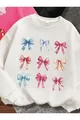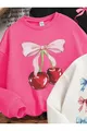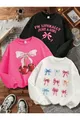 Mädchen Sweatshirt im 3er-Pack mit schwarzen, weißen und rosa Schleifen und Kirschdruck, Rundhalsausschnitt