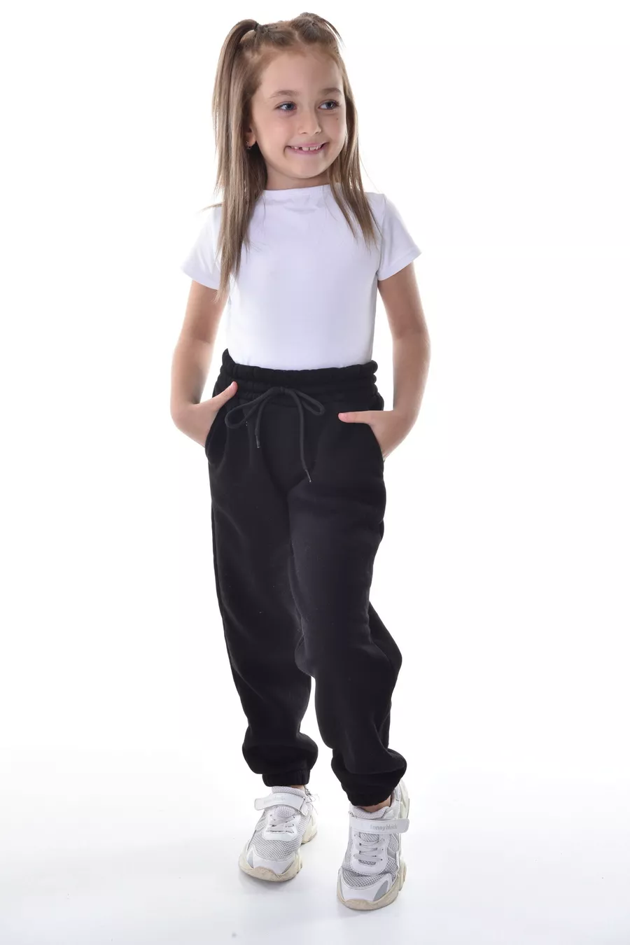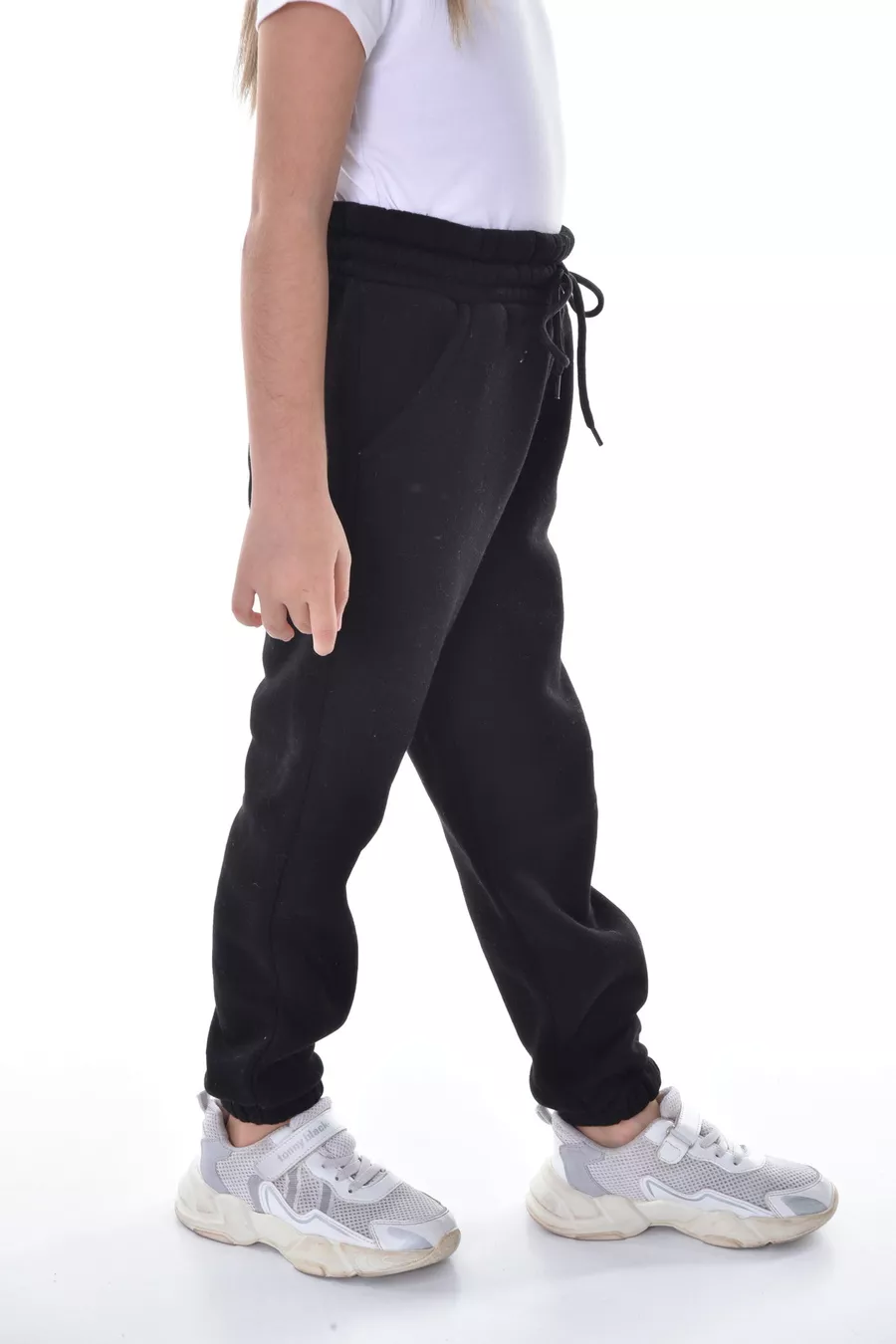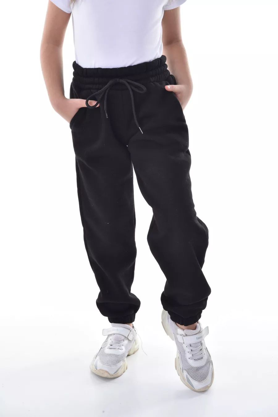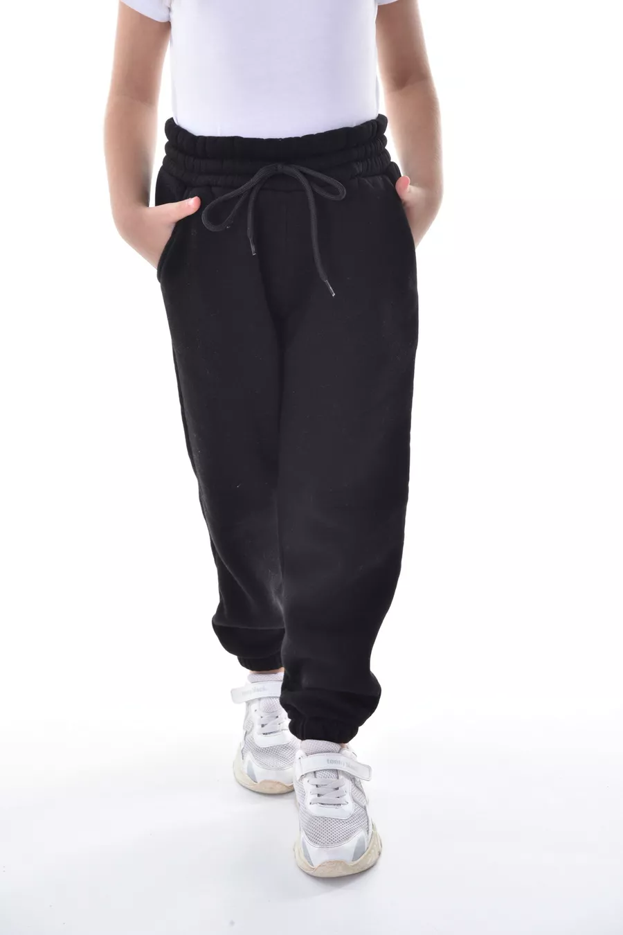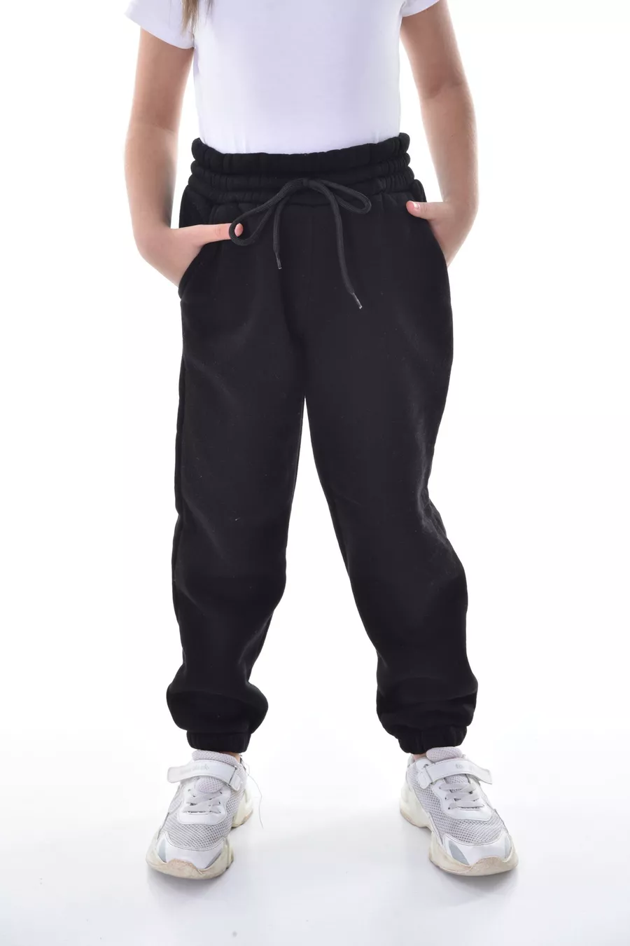 Mädchen- und Jungen-Winter-Trainingshose aus schwarzem, kompakt gestricktem Stoff, innen mit Fleece, 3-fädig Jogger-Hose